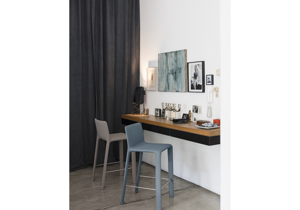 Joko firmato da Bartoli Design per Kristalia è uno sgabello con rivestimento disponibile in tessuto o pelle. Lo sgabello è proposto in due altezze. Poggiapiedi in acciaio inox.