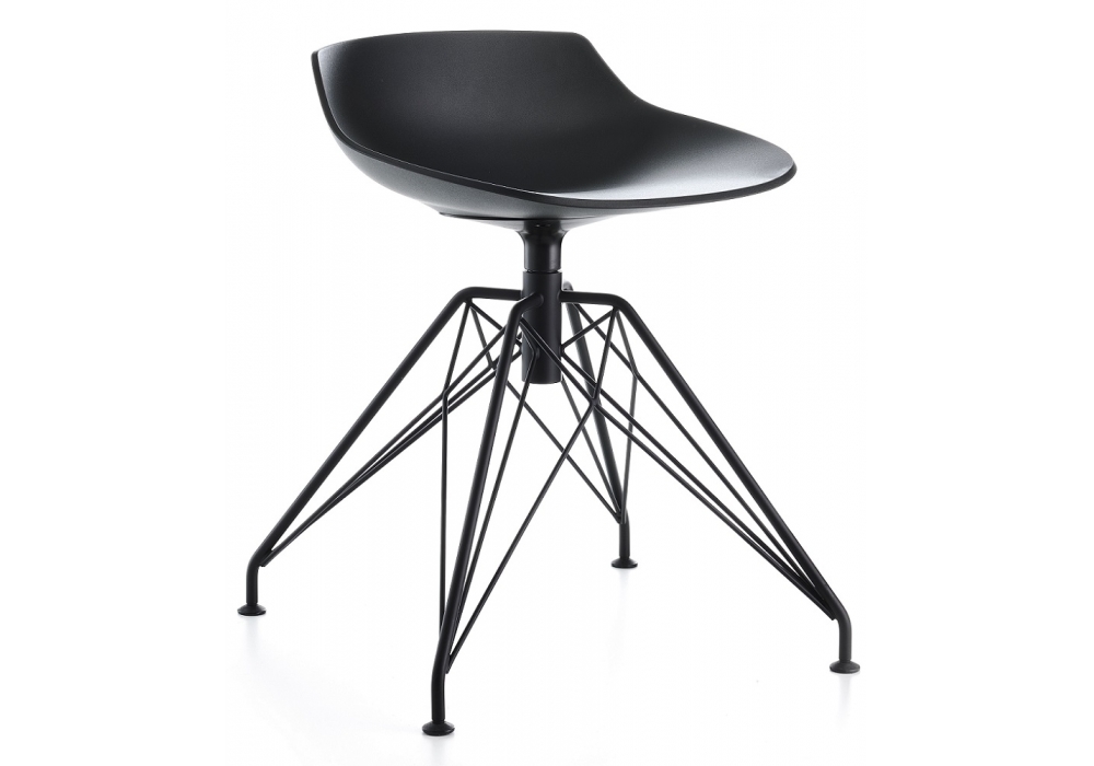 Flow Stool firmato da Jean Marie Massaud per MDF Italia è uno sgabello con scocca in poliuretano, ottenuta per stampaggio, nei colori bianco e nero opaco con finitura goffrata. La base è costituita da 4 gambe LEM, in tubolare ed elementi di raccordo in filo d’acciaio, verniciato bianco o grigio grafite opaco. Supporto di aggancio in alluminio fornito nello stesso colore. Girevole a 360°.