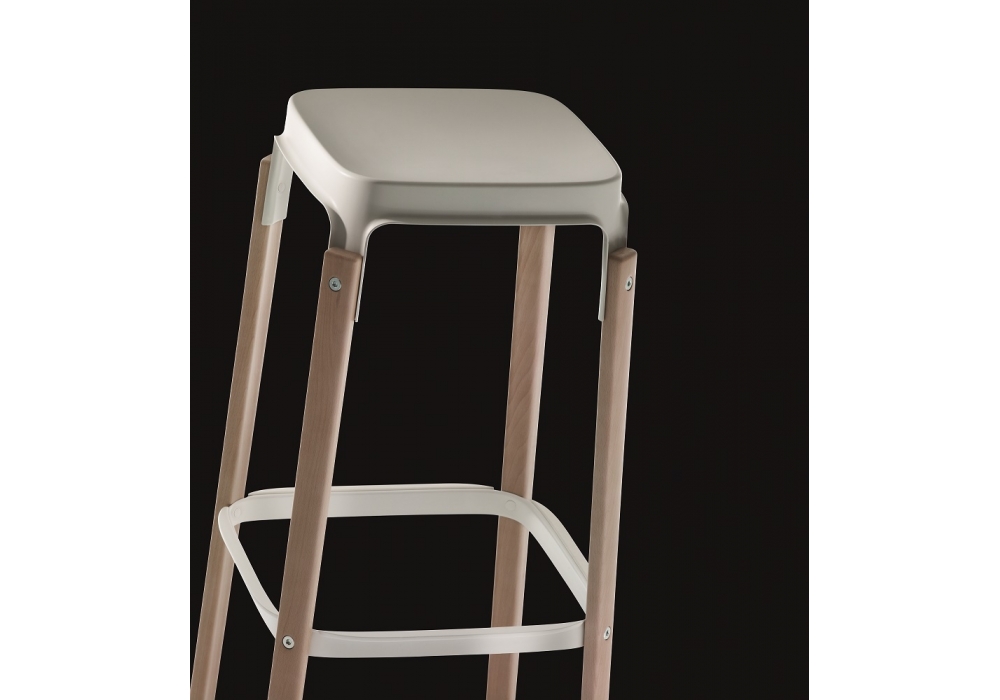 Steelwood firmato da Ronan & Erwan Bouroullec per Magis è uno sgabello realizzato con gambe in massello di faggio naturale, noce o verniciato. Sedile e poggiapiedi in lamiera di acciaio verniciato poliestere. Disponibile in diverse finiture.