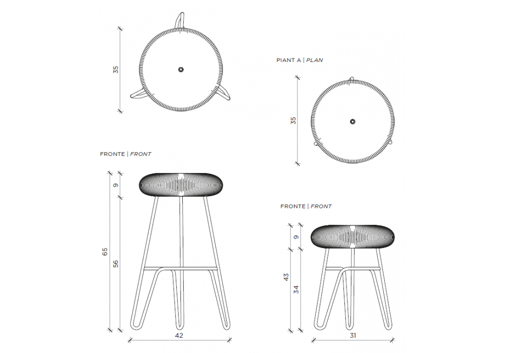 | Dimensioni | Ø 31 x H 43 cm; Ø 42 x H 65 cm. |