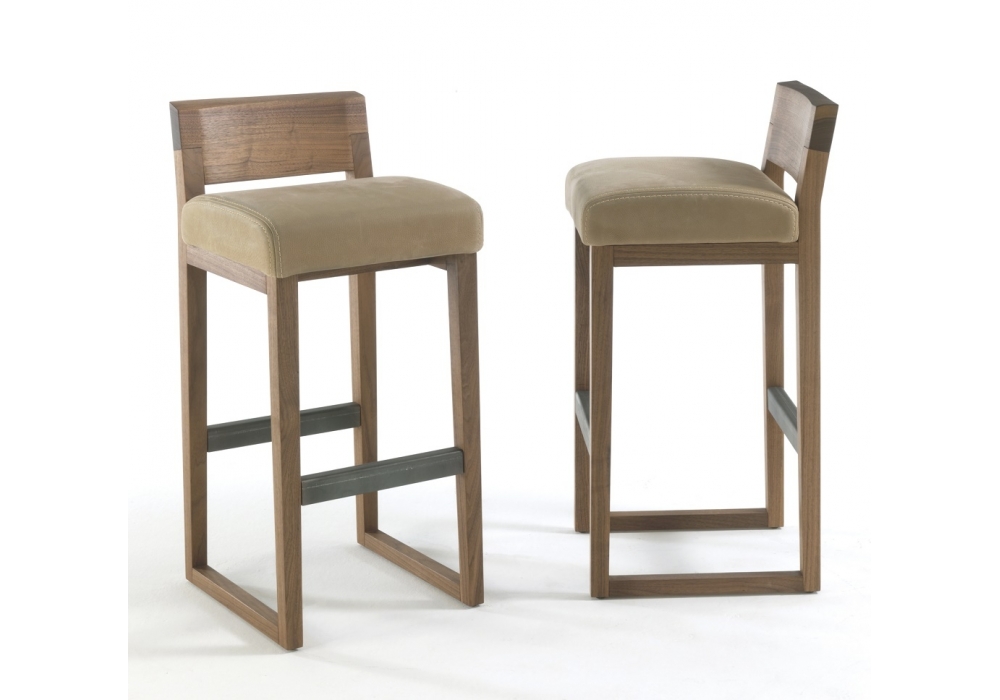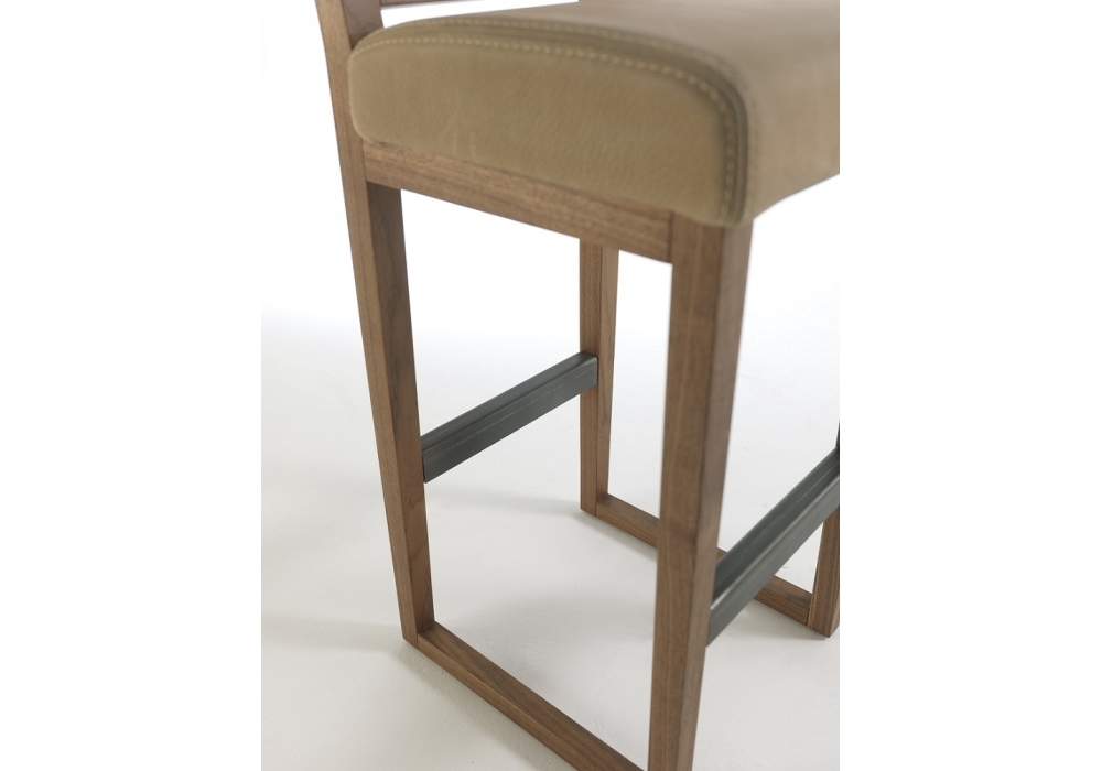 Dino firmato da Terry Dwan per Riva 1920 è sgabello da bar con poggiapiedi, caratterizzato da struttura in legno massello con schienale dal bordo naturale e seduta imbottita rivestita in pelle o tessuto. Disponibile in due altezze differenti.
