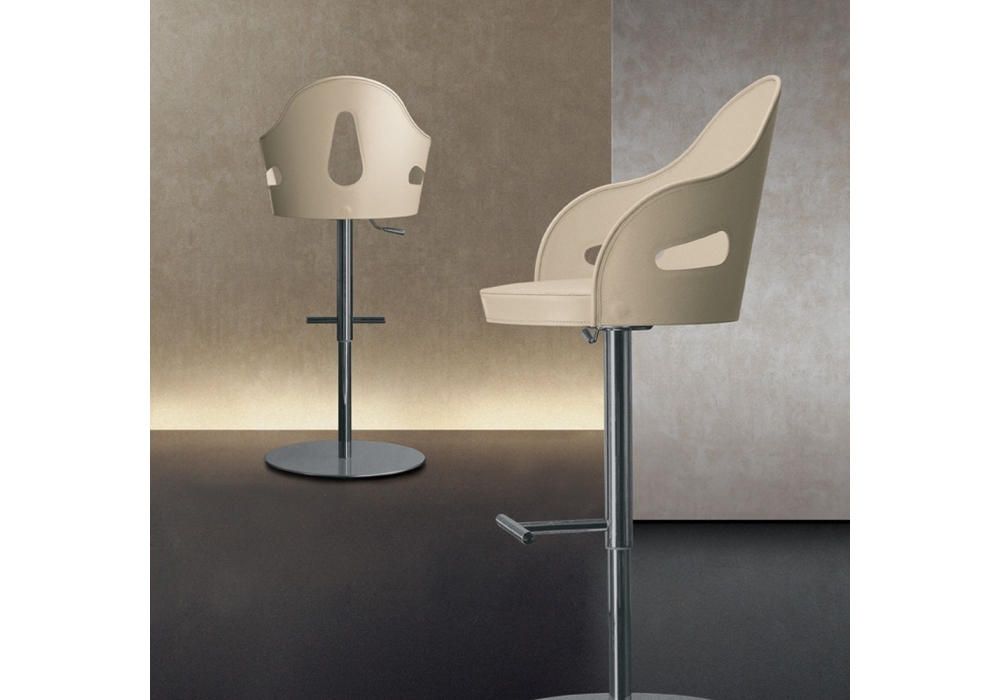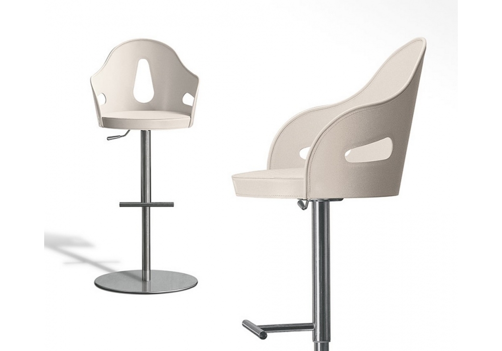 Dora è uno sgabello girevole disegnato da Massimo Scolari per Giorgetti. Sgabello regolabile in altezza mediante una molla a gas, con la struttura della base in acciaio satinato. La struttura del sedile è in multistrato e l’imbottitura è in poliuretano espanso a quote differenziate. La struttura dello schienale è in alluminio calandrato (curvato)