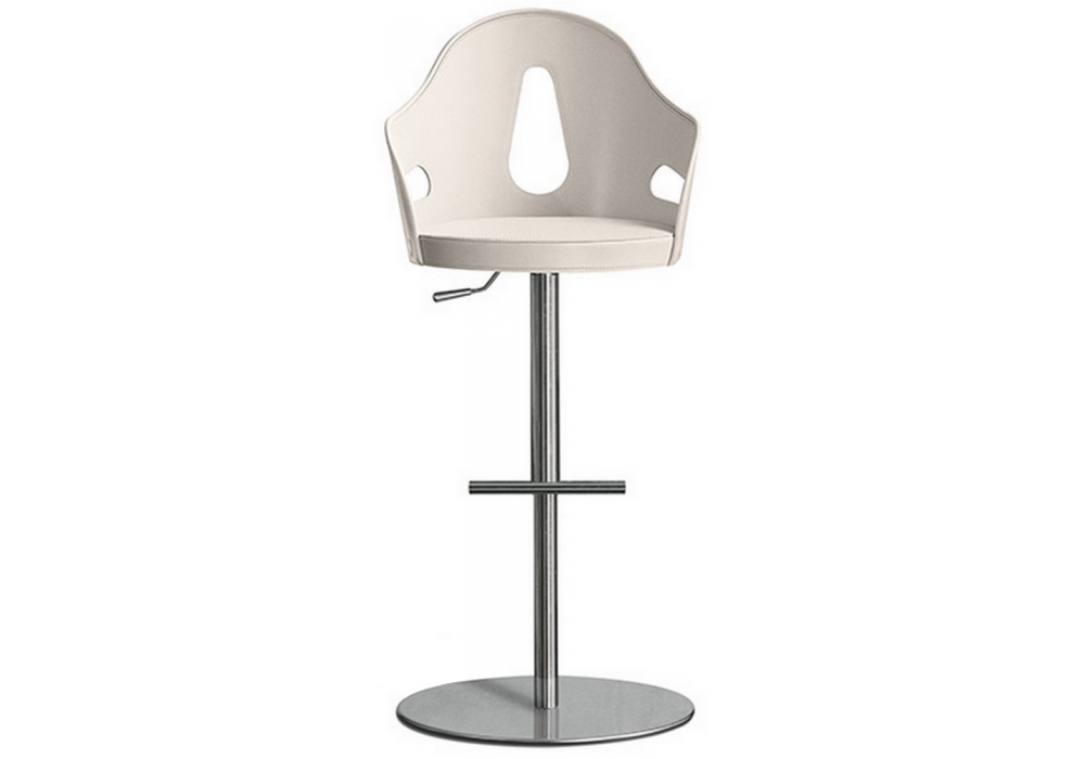 Dora è uno sgabello girevole disegnato da Massimo Scolari per Giorgetti. Sgabello regolabile in altezza mediante una molla a gas, con la struttura della base in acciaio satinato. La struttura del sedile è in multistrato e l’imbottitura è in poliuretano espanso a quote differenziate. La struttura dello schienale è in alluminio calandrato (curvato). Il rivestimento in cuoio è disponibile in diversi colori ed offre la possibilità, per lo schienale, di abbinare profili di tonalità diverse.