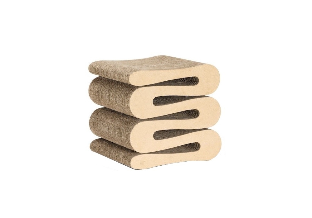 Vitra Wiggle stool sgabello: Con la serie di mobili "Easy Edges" del 1972, Frank Gehry è riuscito nell'intento di dare una nuova dimensione estetica ad un materiale ordinario come il cartone.