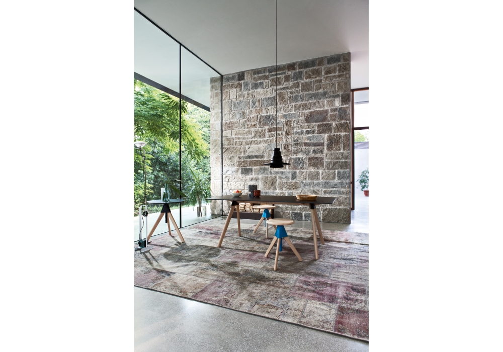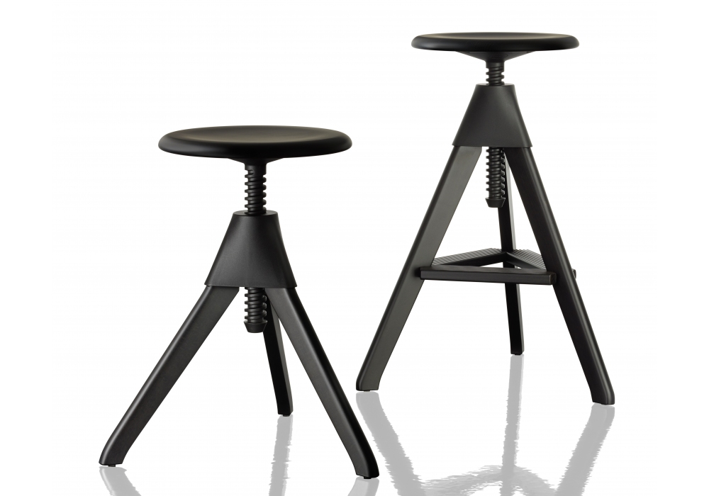 The Wild Bunch - Tom & Jerry firmato da Konstantin Grcic per Magis è uno sgabello girevole e regolabile in altezza. Seduta e gambe in massello di faggio naturale o tinto, giunto e vite in polipropilene caricato di fibra di vetro. Disponibile in diverse finiture e due dimensioni.