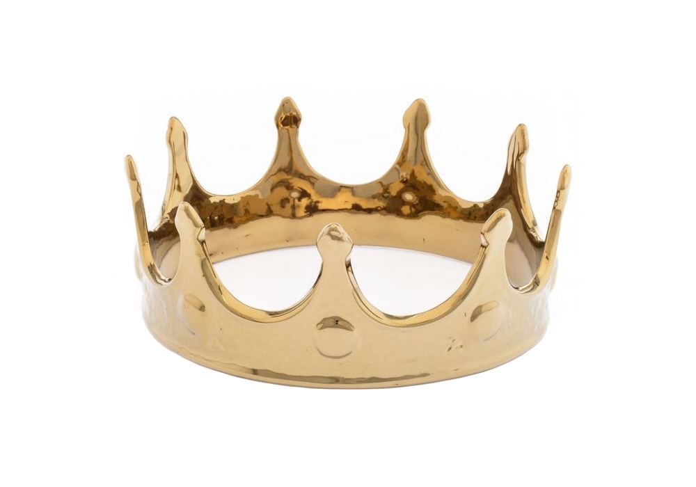 La Mia Corona firmato da Selab & Alessandro Zambelli per Seletti è una corona in pocerllana dorata utilizzata come elemento di arredo.