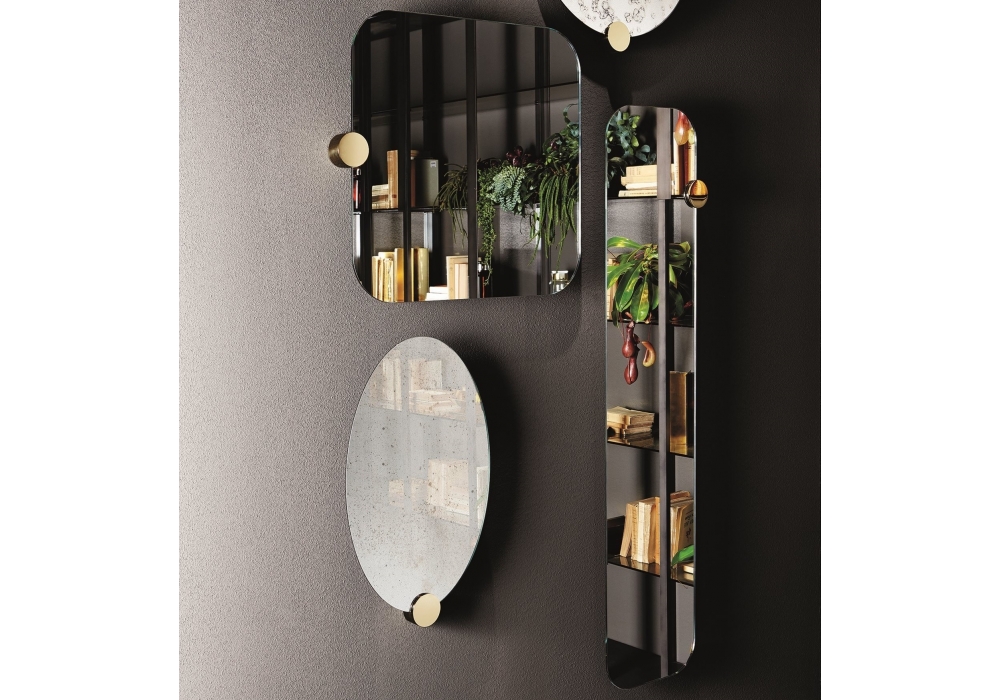 Odette firmato da Studio G&R per Gallotti&Radice è uno specchio con particolare decorativo in ottone lucido posizionabile a discrezione lungo il perimetro.