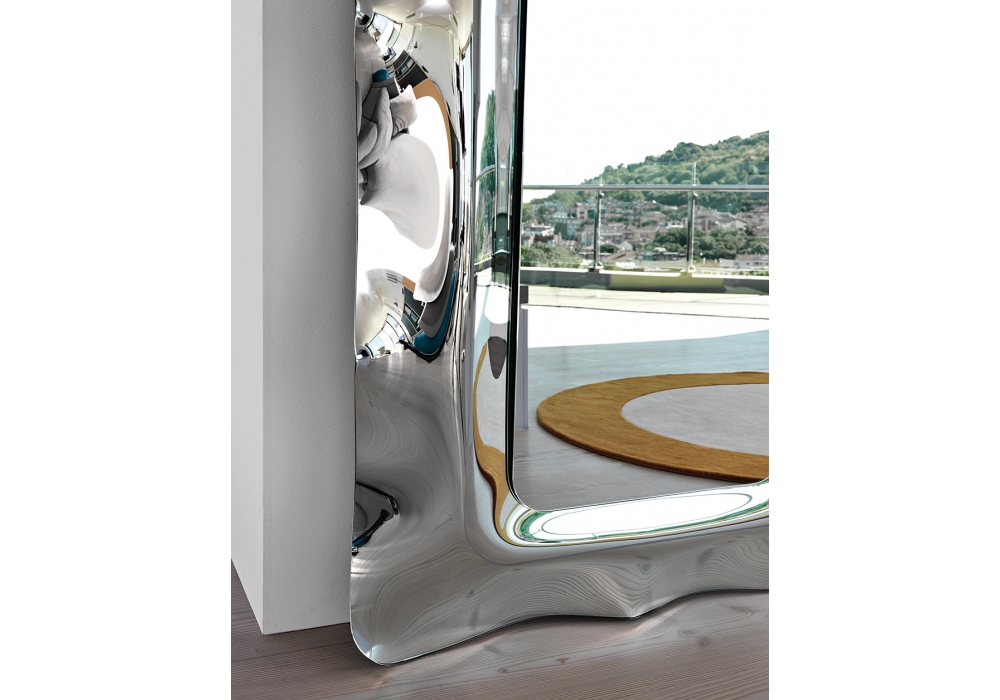 Dorian firmato da Massimo Iosa Ghini per Fiam è uno specchio in vetro fuso ad alta temperatura. Cornice posteriore in metallo verniciato.