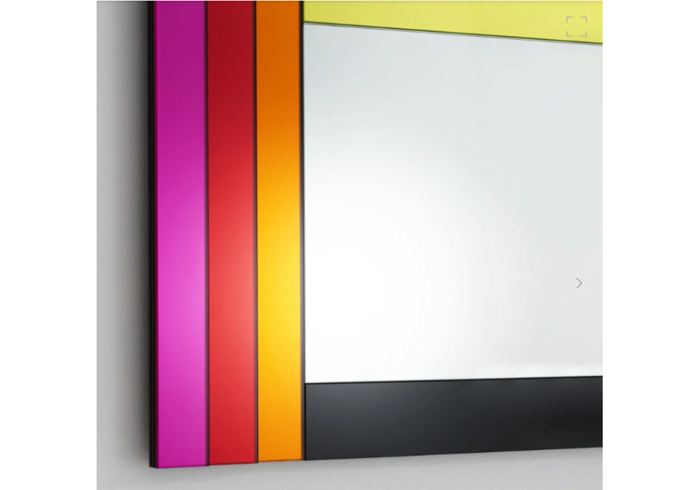 Dioniso 3 firmato da Ettore Sottass per Glas Italia è uno specchio appartenente ad una collezione di 6 specchi a parete di varie forme e misure. Si caratterizza da cornici policrome composte da elementi in specchio laminato colorato, in cristallo laminato colorato e in cristallo laccato.