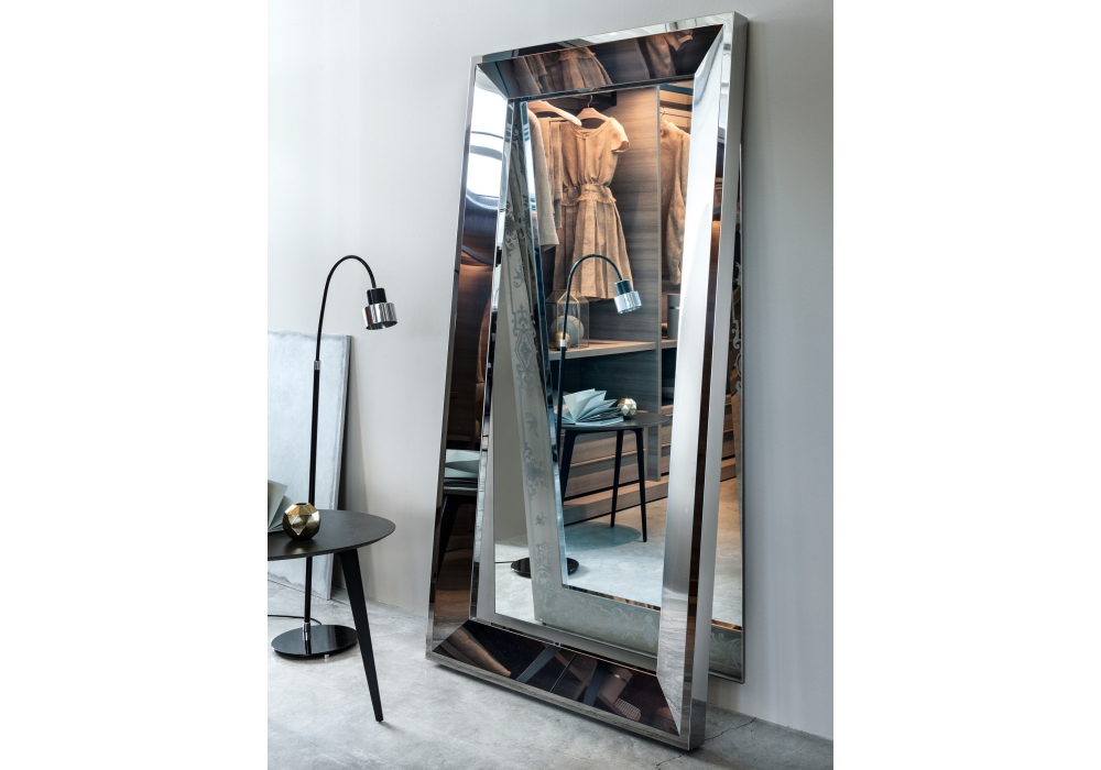Vanity firmato da Alessandro Dubini for Lema è uno specchio con cornice in acciaio lucido.