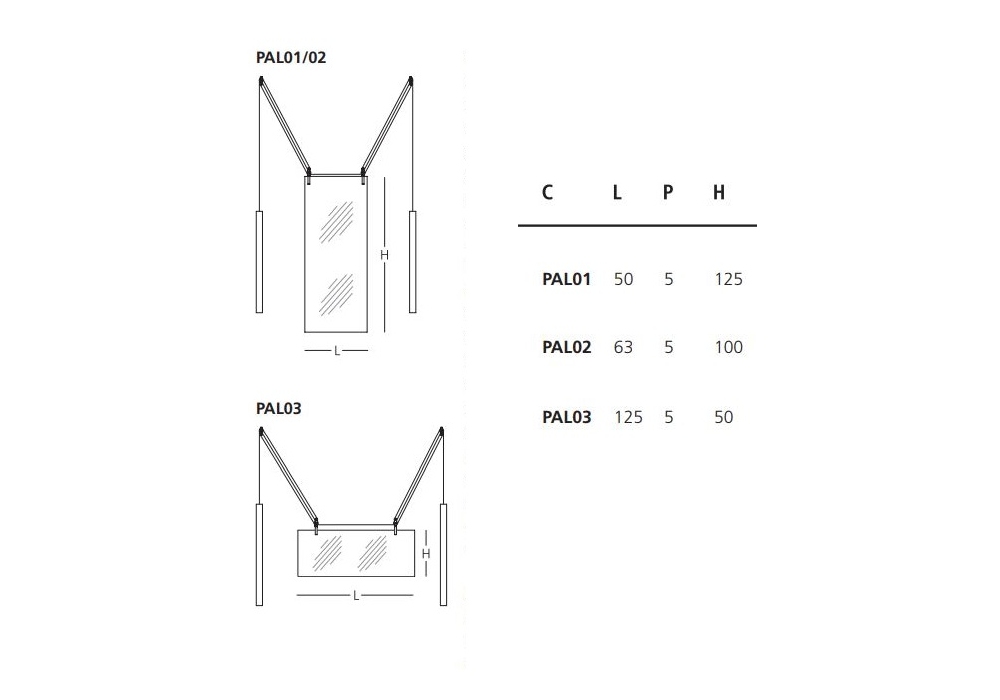 | Dimensioni | 50 x 5 x H 125 cm; 63 x 5 x H 100 cm; 125 x 5 x H 50 cm. |