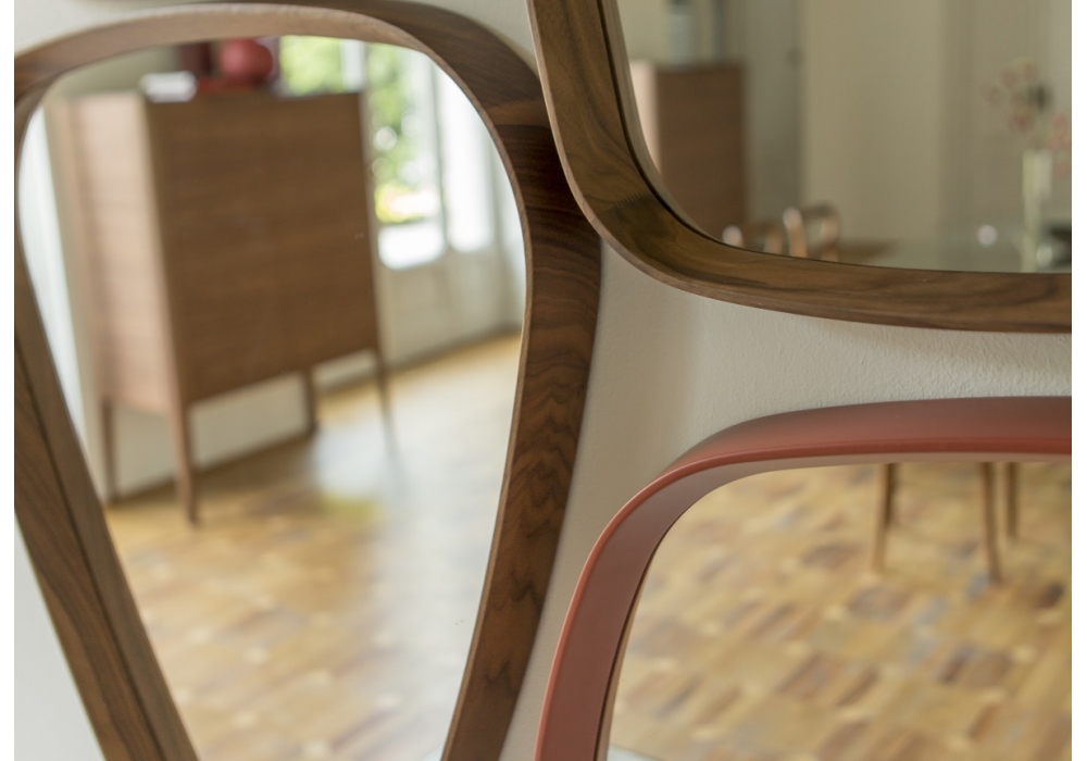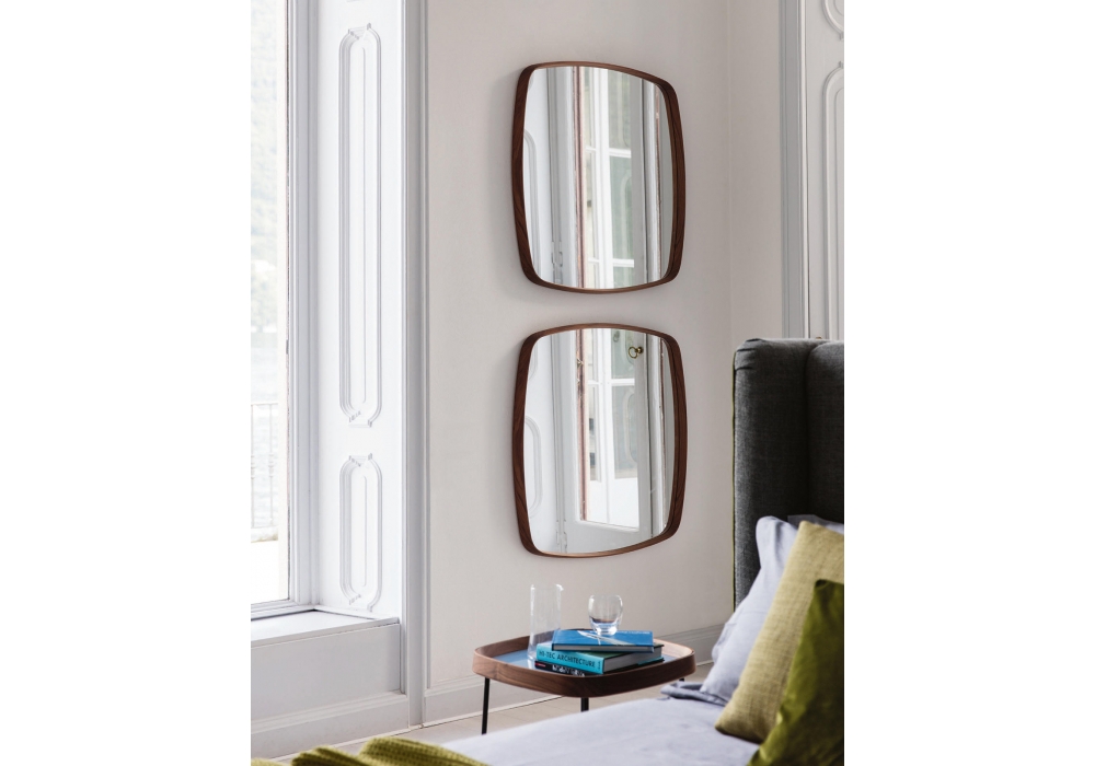 Mix firmato da Carlo Ballabio per Porada è uno specchio da parete con cornice in massello di noce canaletta o laccato opaco. Orientabile a 360° grazie al particolare supporto di fissaggio. Dima di montaggio inclusa. Disponibile in svariate dimensioni.