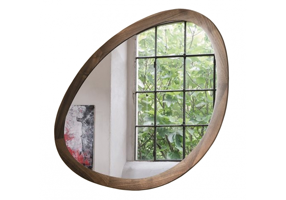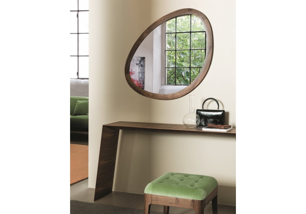 Giolino firmato da Emanuela Garbin & Mario Dell'Orto per Porada è uno specchio con cornice in massello di noce canaletta, laccato opaco poro chiuso o foglia oro o argento.