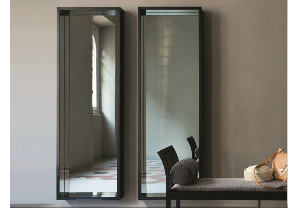 Four Seasons firmato da Opera Design per Porada è uno specchio a parete rettangolare con struttura in noce canaletta o foglia disponibile in diverse finiture.