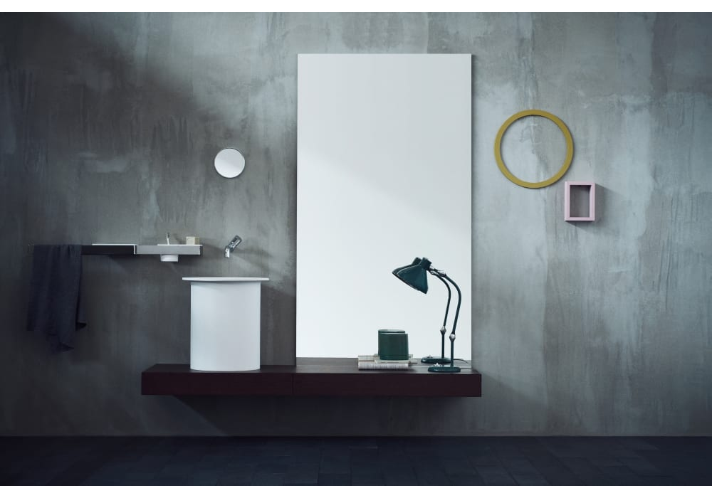 Nudo firmato da RD Agape per Agape è uno specchio rettangolare senza cornice, con bordo a filo lucido e pellicola di sicurezza. Kit di fissaggio incluso.