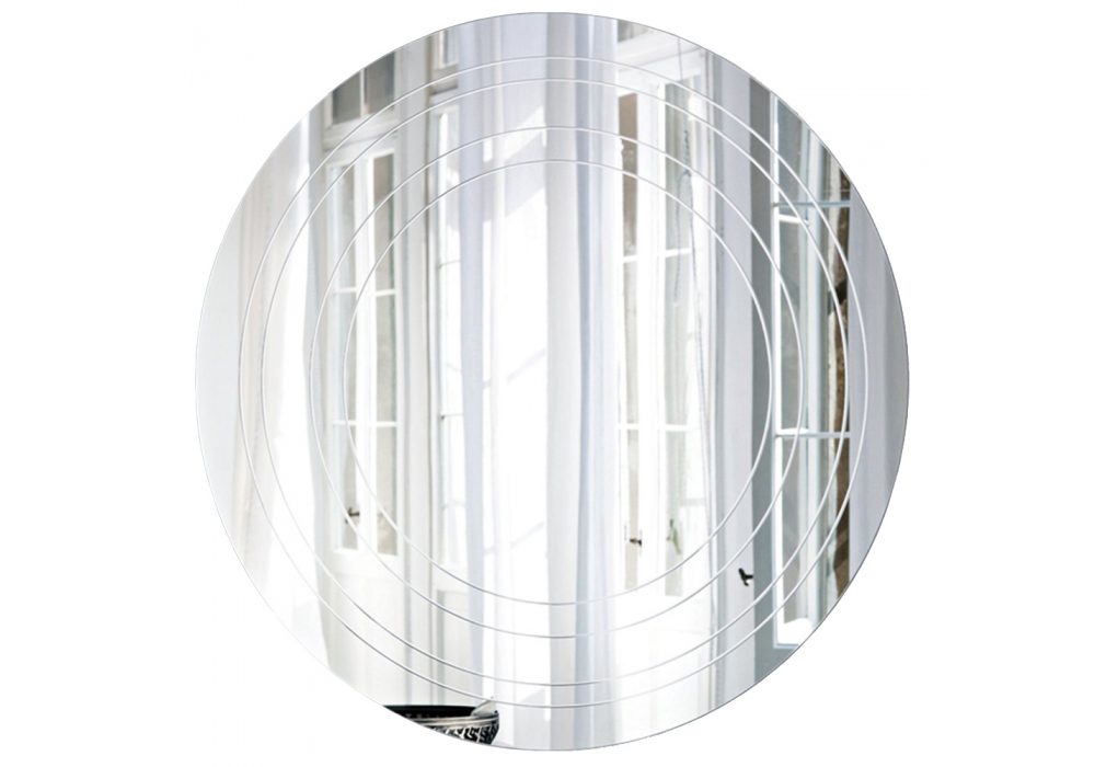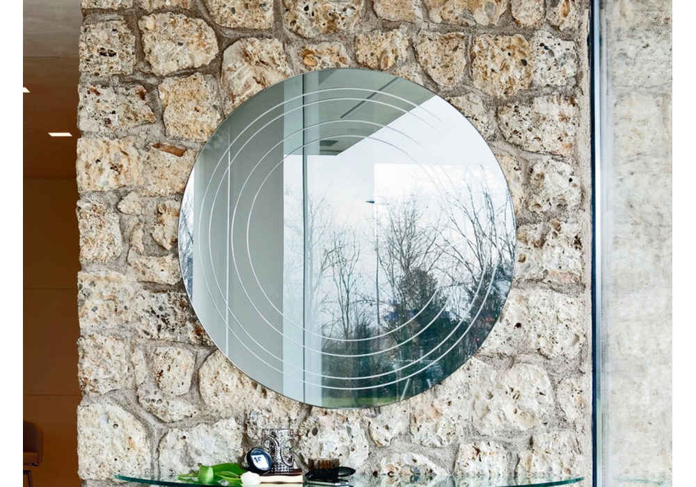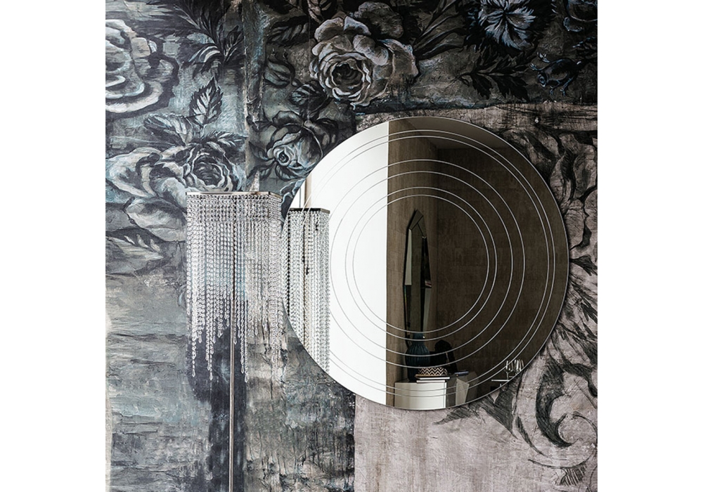 Ring firmato da Emanuele Zenere per Cattelan Italia è uno specchio da parete interamente realizzato in cristallo specchiato con incisioni circolari.