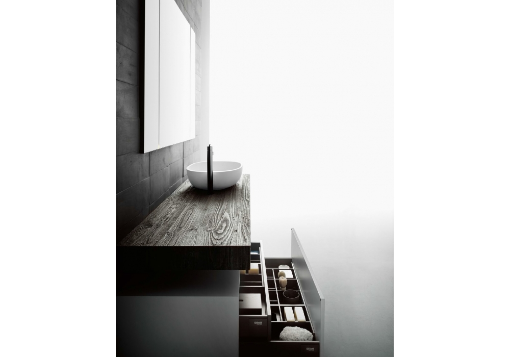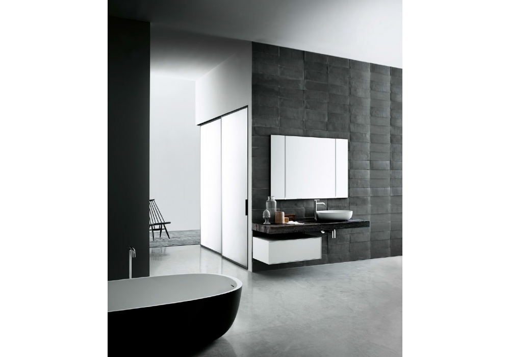 WK6 firmato da Piero Lissoni per Boffi è uno specchio da parete a LED con telaio in anodizzato naturale, verniciato bianco opaco o nero opaco. Disponibile nella versione con barra a LED singola, doppia oppure con barra a LED e due lampade Boccia.