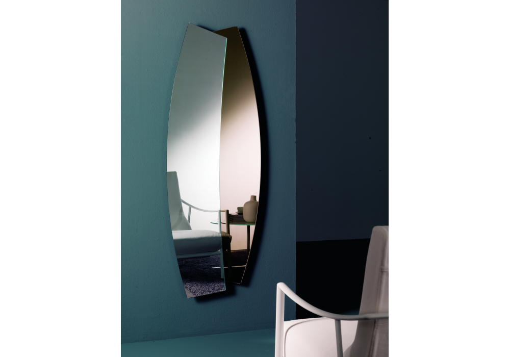 Double firmata da Giorgio Manzali per Bontempi è uno specchio a due forme argento e bronzo.