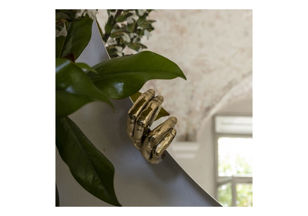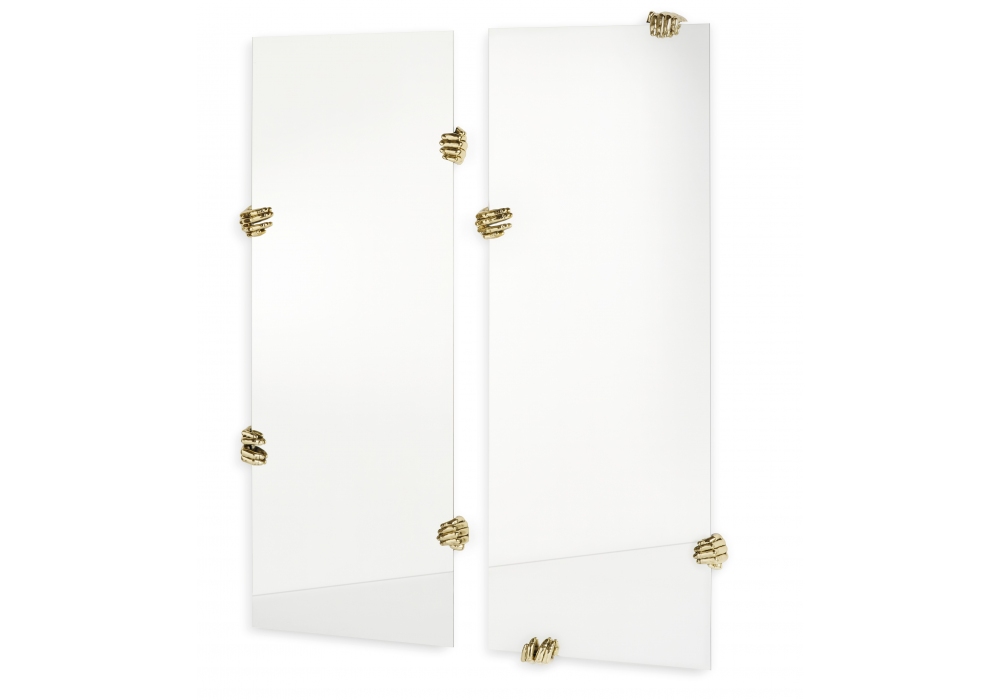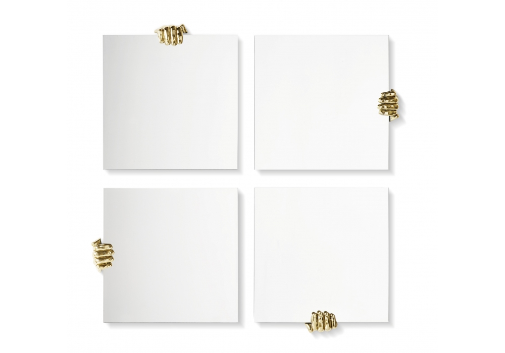 Selfie firmato da Alessandra Baldereschi per mogg è uno specchio da parete con mani decorative in fusione di ottone. E’ possibile fissare le mani in diverse, ma prestabilite, posizioni. Lo specchio quadrato include 1 mano, l’ovale 2 mani, il rettangolare 4 mani, il tondo 6 mani.