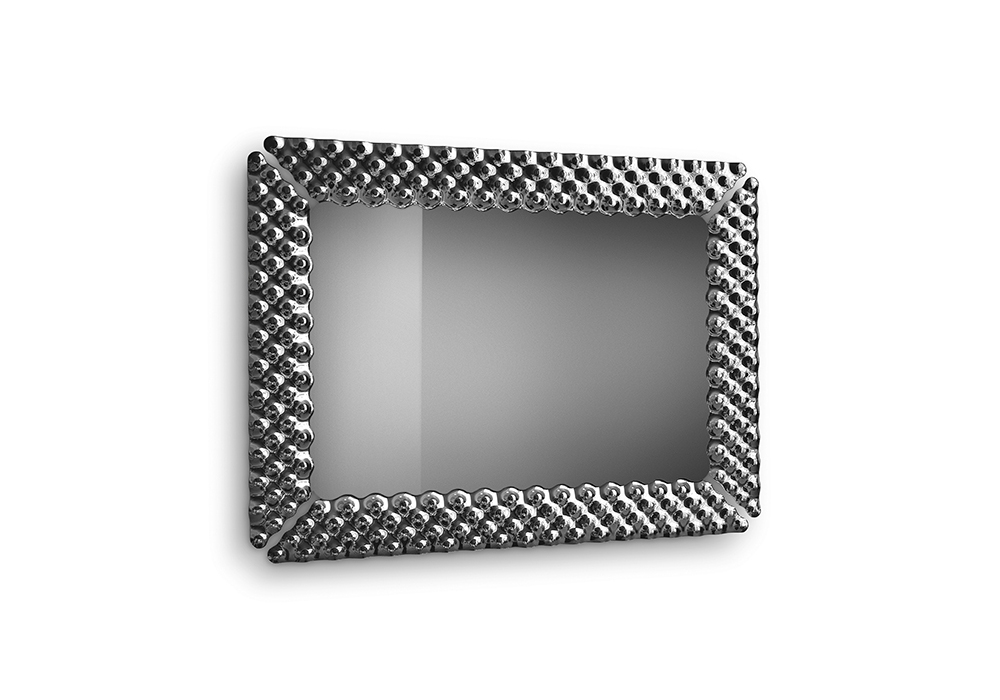 Pop TV firmato da Marcel Wanders Studio per Fiam è uno specchio da parete con cornice porta TV integrata. Specchio centrale in vetro semiriflettente retroverniciato nero. Cornice formata da 4 elementi in vetro fumè o bronzo. Telaio in metallo verniciato nero opaco.