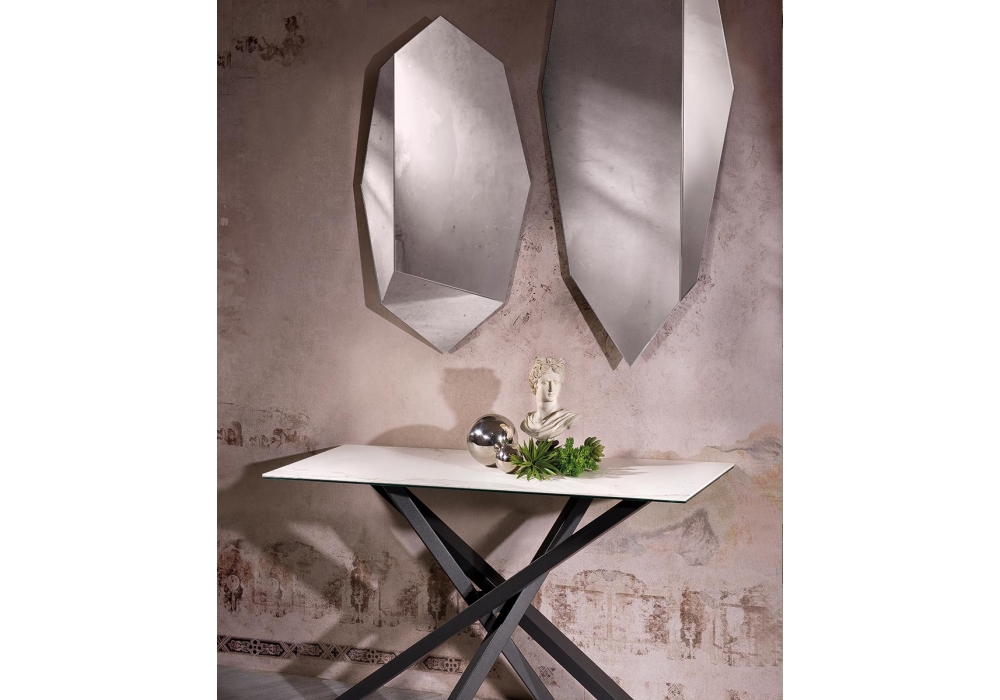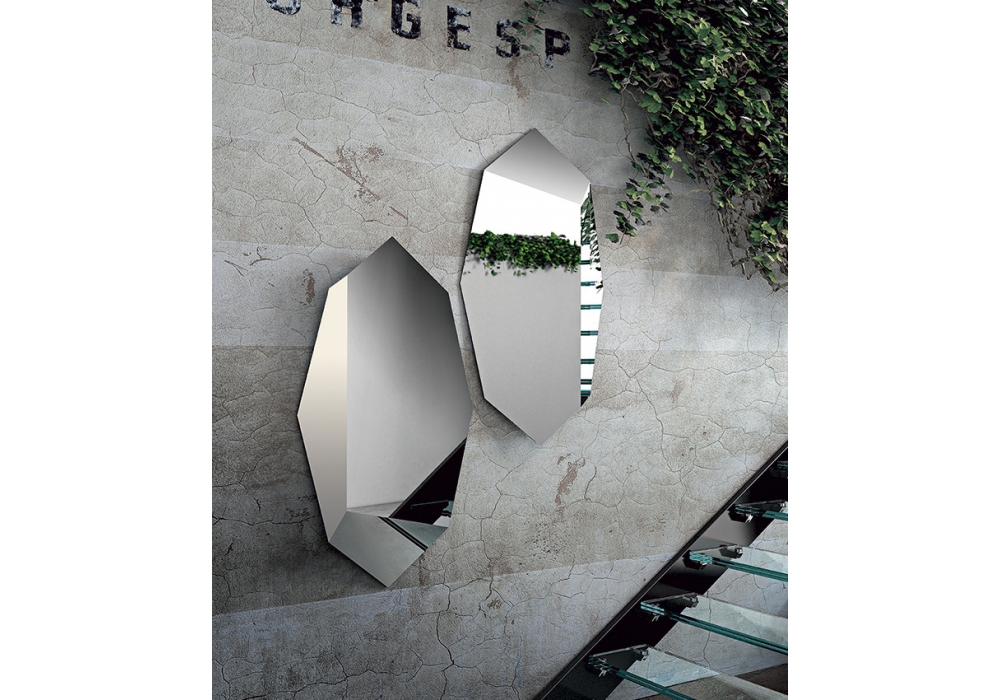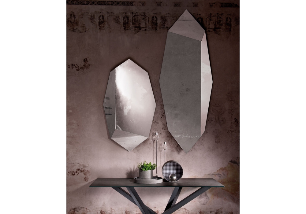 Prisma firmato da Riflessi è uno specchio realizzato con superfici inclinate disponibile specchiante o bronzato.