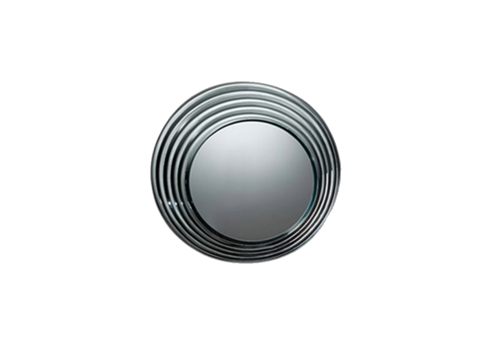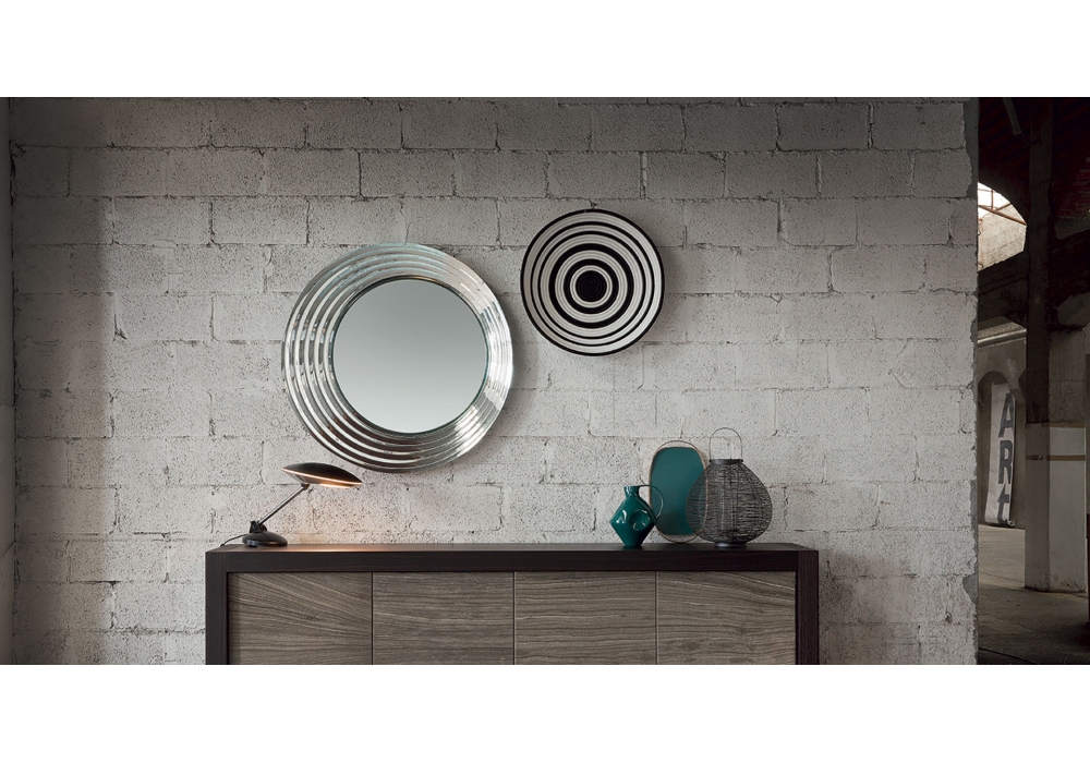 Queen firmato da Riflessi è uno specchio realizzato con cornice in cristallo specchiante realizzata in fusione ad anelli concentrici.