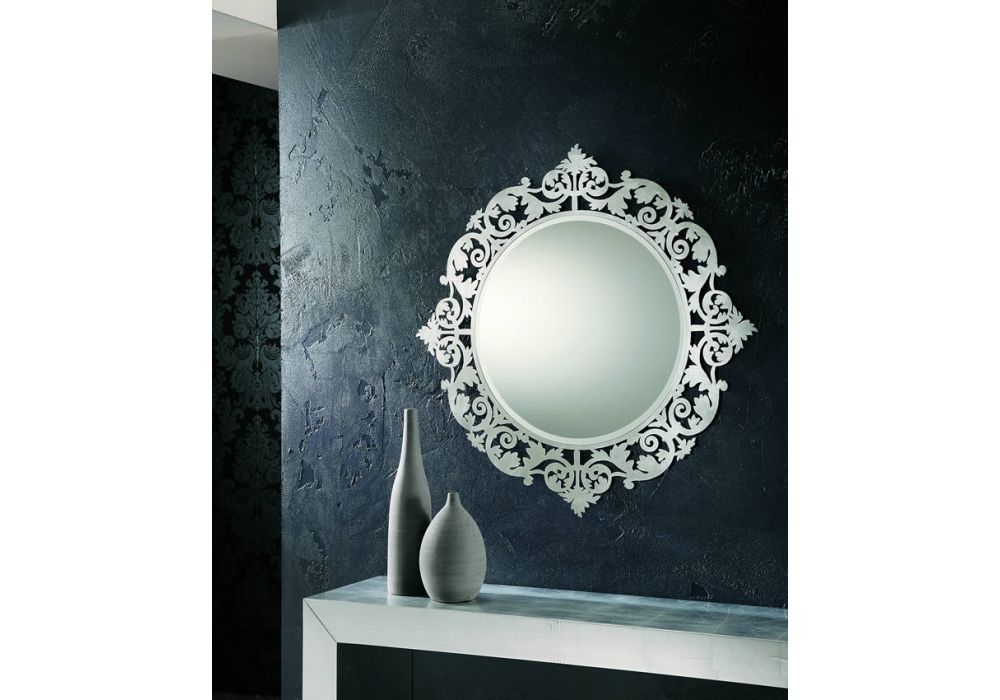 Romantico firmato da Riflessi è uno specchio bisellato realizzato con cornice in metallo realizzata con taglio laser, rivestita a mano in foglia. Disponibile in diverse finiture e dimensioni.