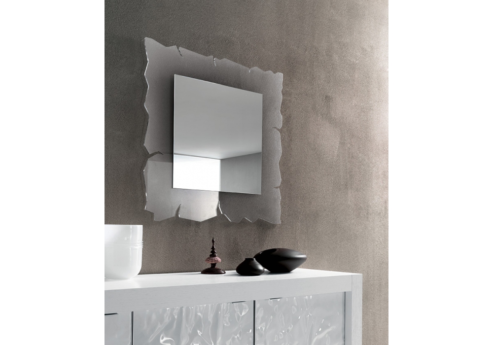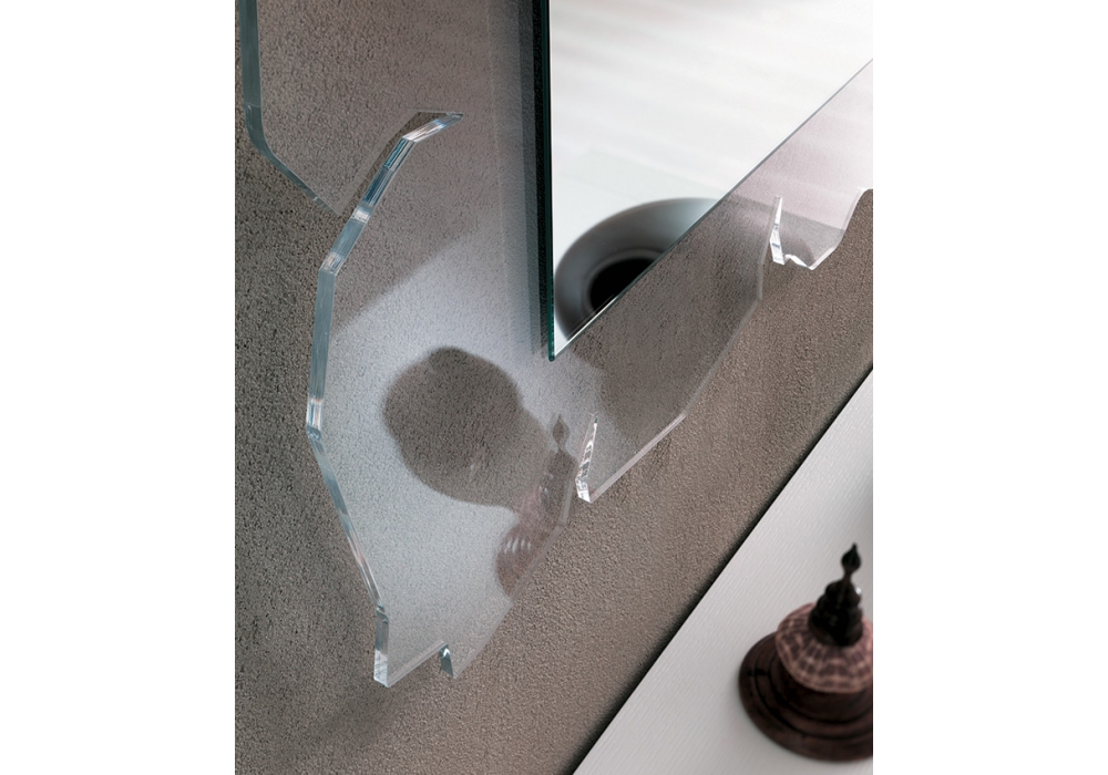 Vision firmato da Riflessi è uno specchio realizzato con cornice in metacrilato trasparente. Illuminazione a LED opzionale.