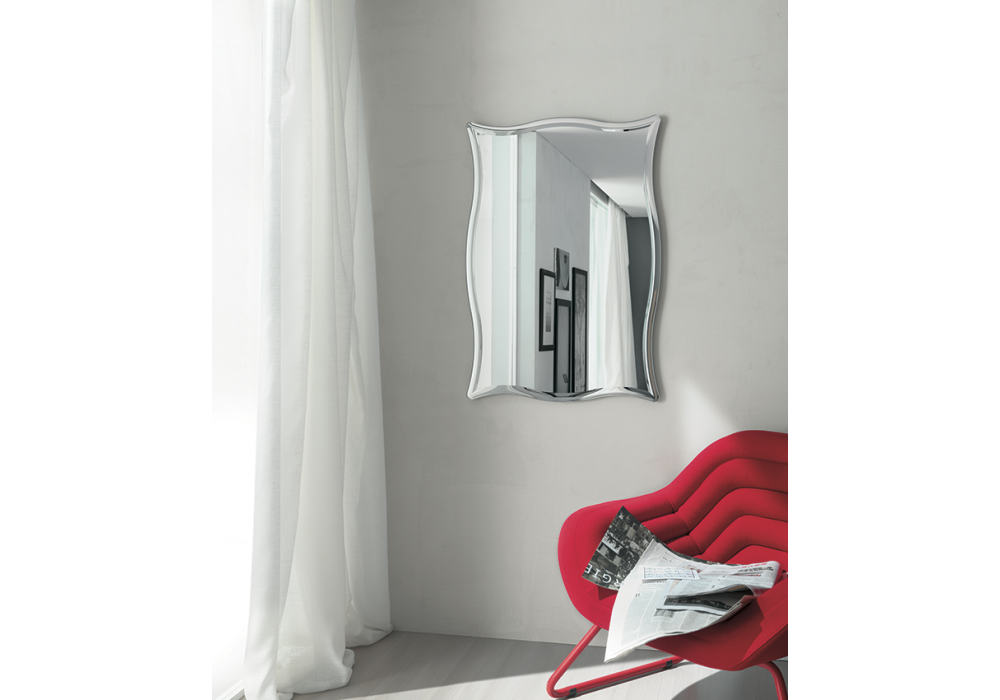Vivian firmato da Riflessi è uno specchio realizzato con bisellatura perimetrale concava.