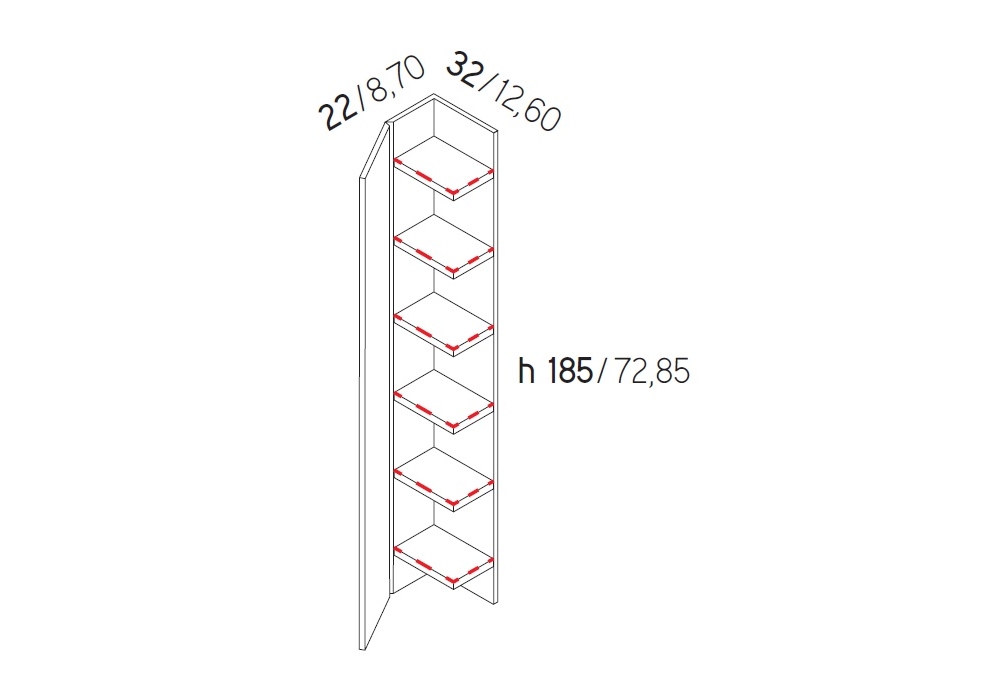 | Dimensioni | • L 32 x 22 x H 185 cm |