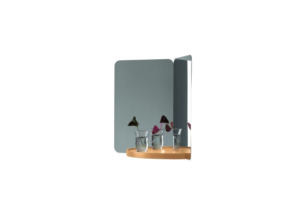 124° Mirror firmato da Daniel Rybakken per Artek è uno specchio con staffa in estrusione di alluminio anodizzato. Disponibile con vassoio in massello di frassino.