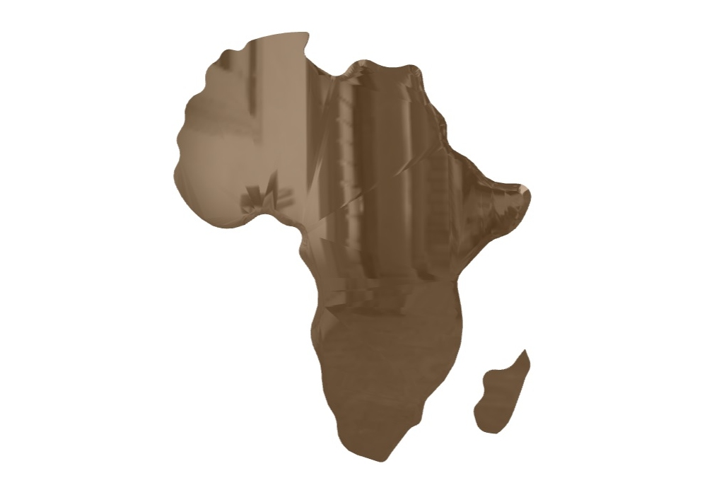 Africa Magnum firmato da Paolo Cattelan per Cattelan Italia è uno specchio da parete in vetro specchiato fumé o bronzo con bordi crescenti bisellati.