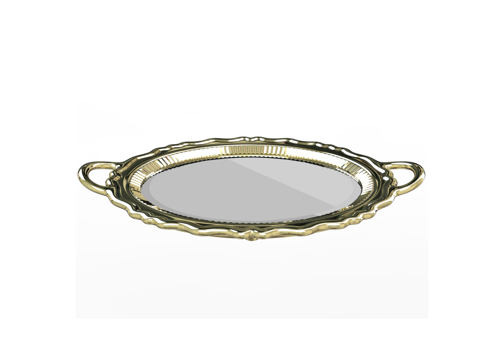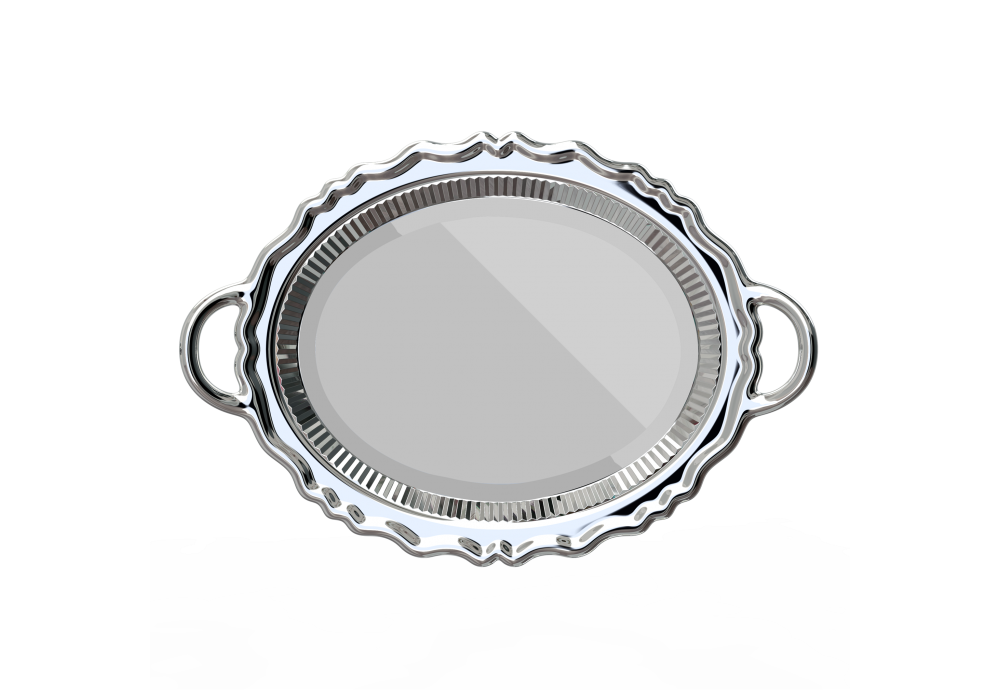 Plateau Miroir Metal firmato da Studio Job per Qeeboo è uno specchio di forma ovale interamente realizzato in polietilene in differenti finiture.