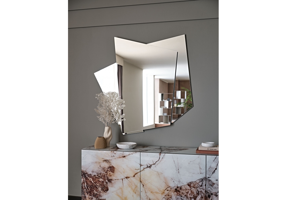 Risiko firmato da Studio Kronos per Cattelan Italia è uno specchio da parete realizzato in vetro specchiato. Disponibile in due dimensioni. Luce a LED opzionale.