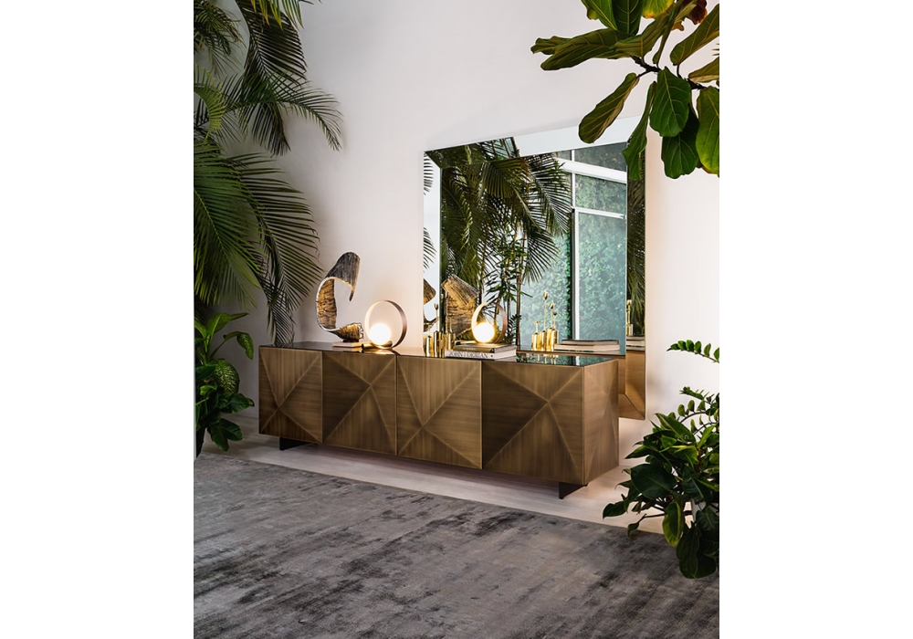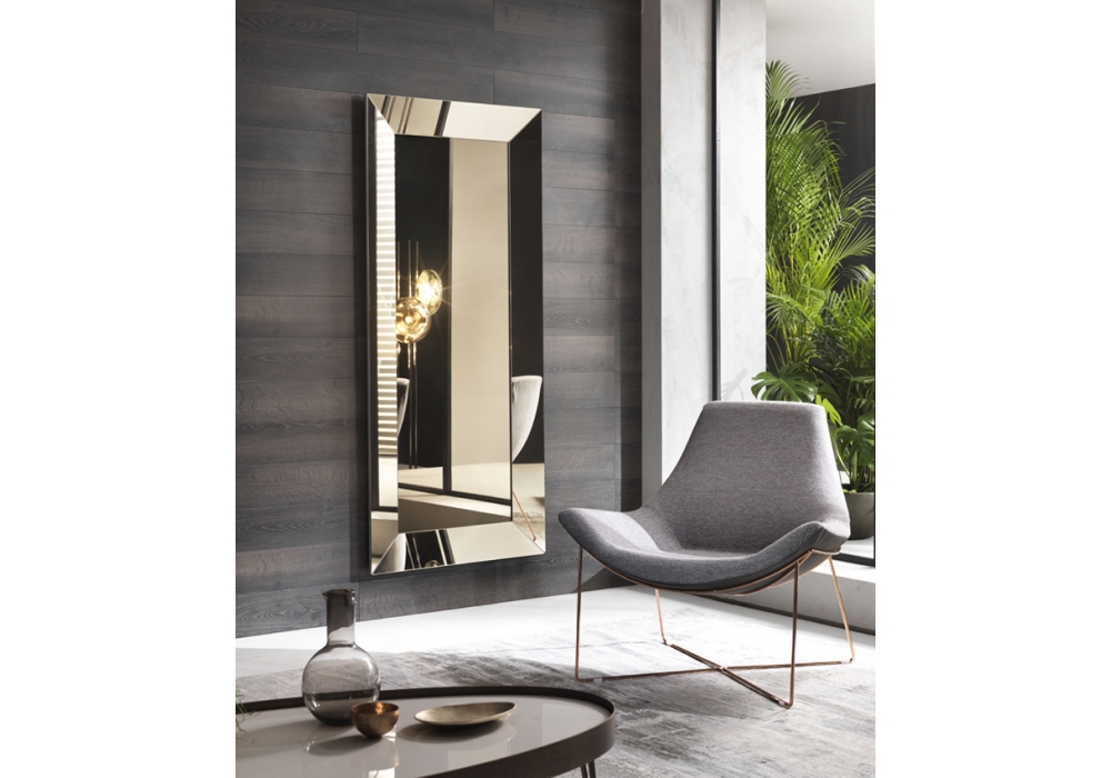 Trapezio firmato da Riflessi è uno specchio con cornice inclinata sia in versione specchiante che specchiante bronzato. Disponibile in diverse dimensioni.