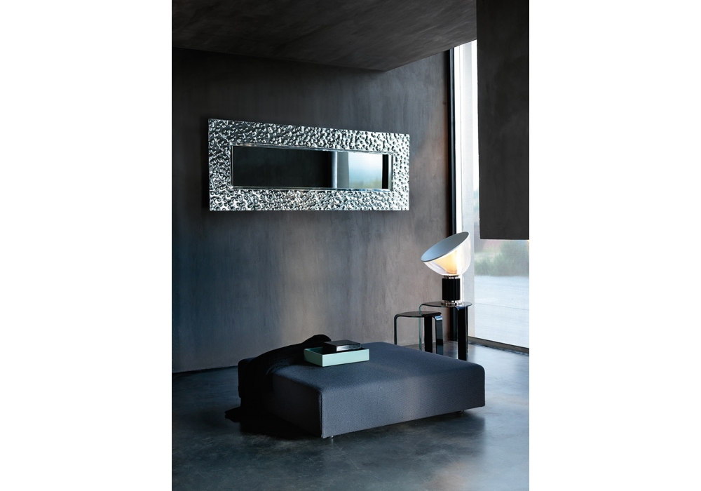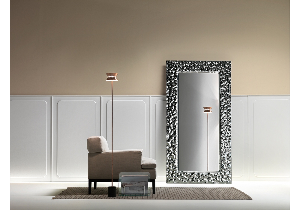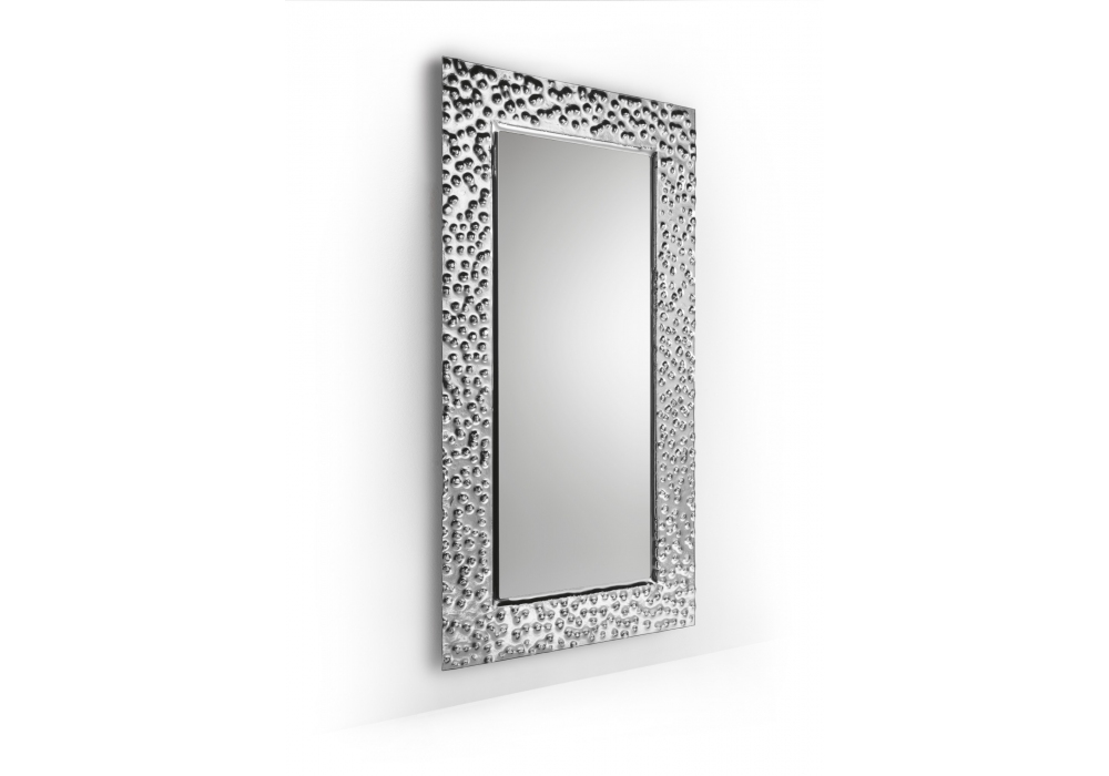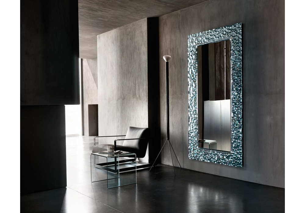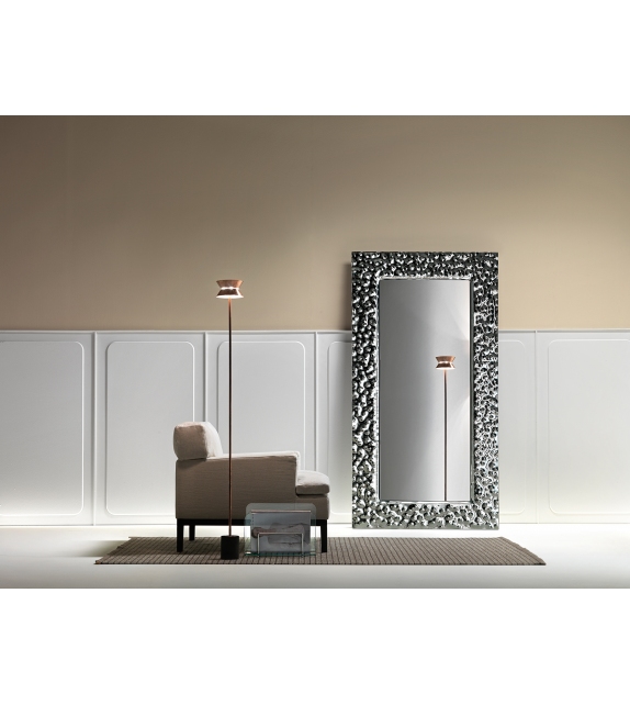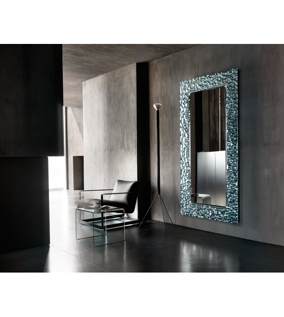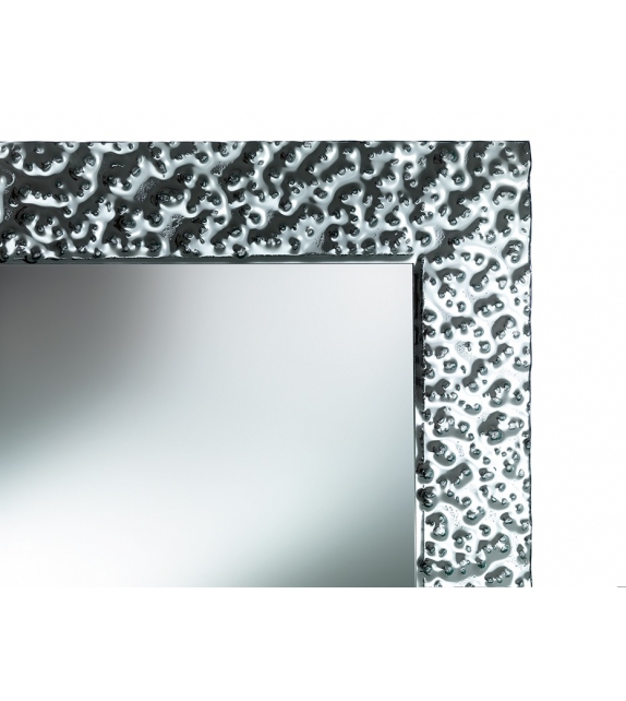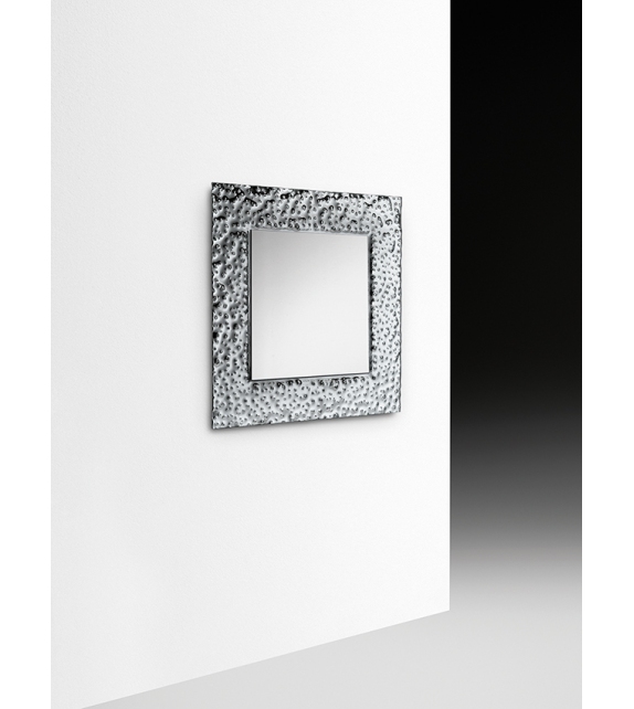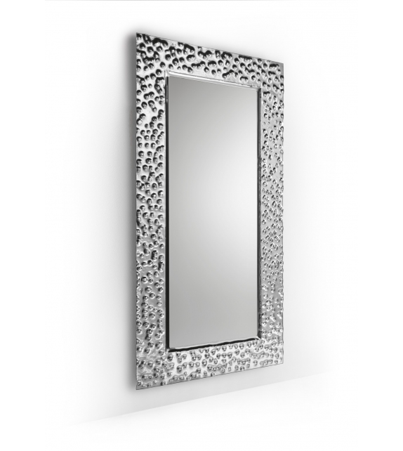 Venus firmato da Vittorio Livi per Fiam è uno specchio realizzato in vetro fuso ad alta temperatura, con retro argentato e decoro artistico in rilievo. Specchio piano da 5 mm di spessore, cornice posteriore in metallo verniciato.