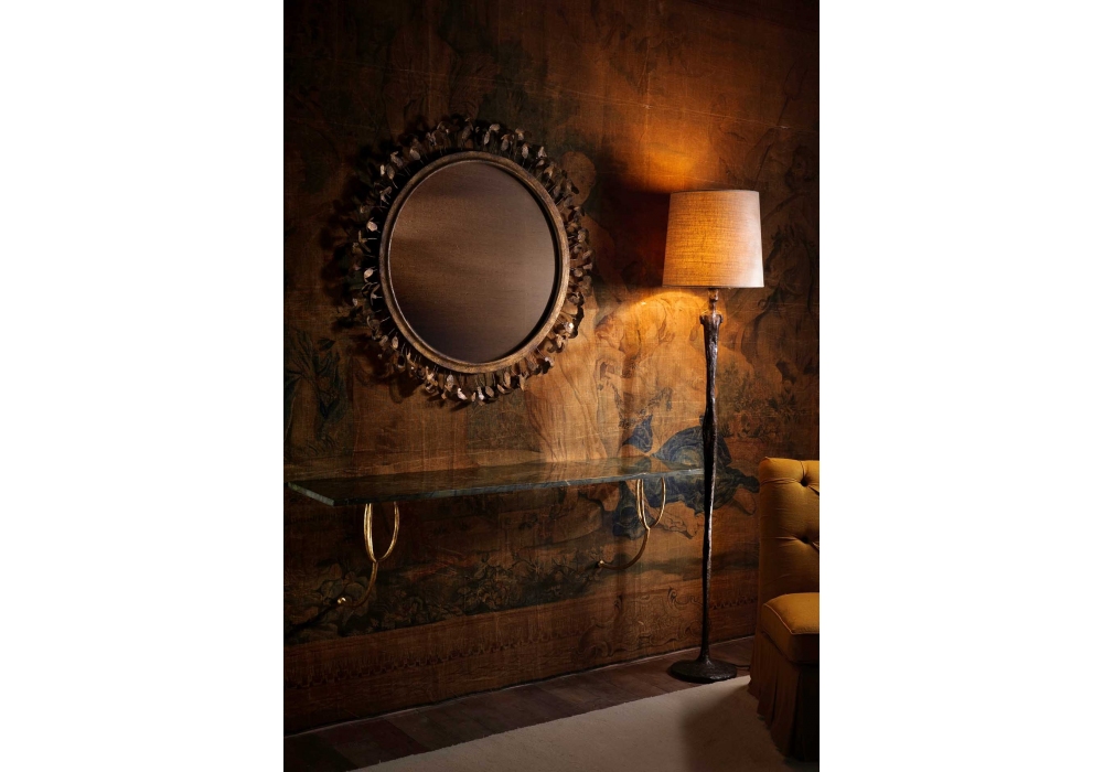 Mushroom prodotto e firmato da Porta Romana è uno specchio di forma circolare interamente strutturato in acciaio forgiato intagliato ed adornato a mano. La cornice metallica è decorata da molteplici applicazioni e verniciata in differenti colorazioni.