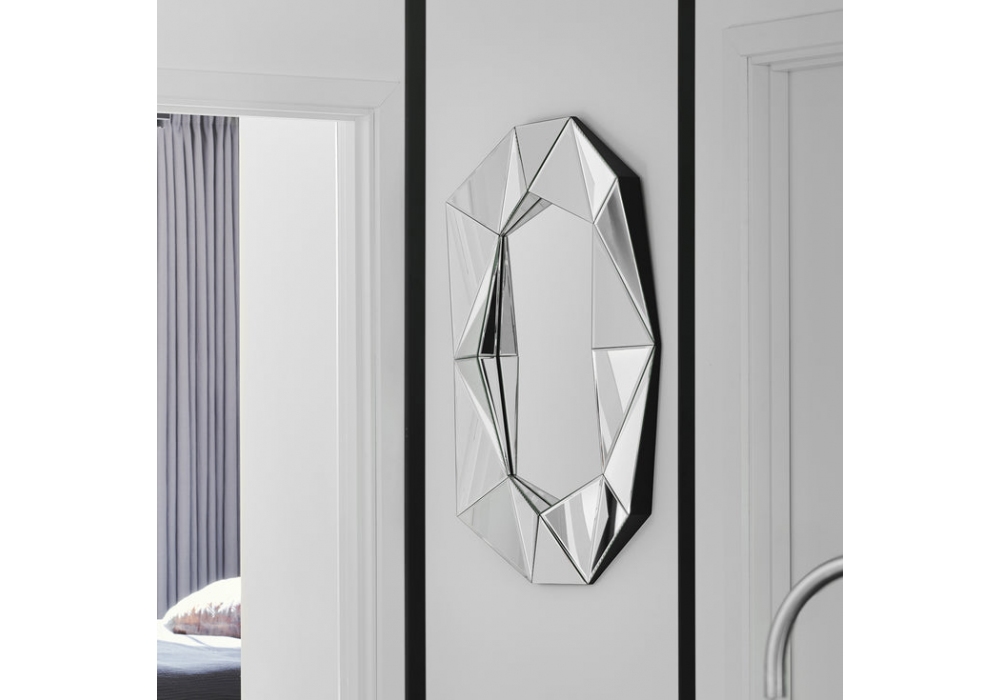 Diamond Large prodotto e firmato da Reflections Copenhagen è uno specchio di forma estratta in vetro applicato su base di supporto in MDF. La cornice è strutturata da varie applicazioni geometriche accostate l'una all'altra che compongono una superficie movimentata richiamando lo sitle Art Deco. Diamond Large è disponibile in differenti finiture.