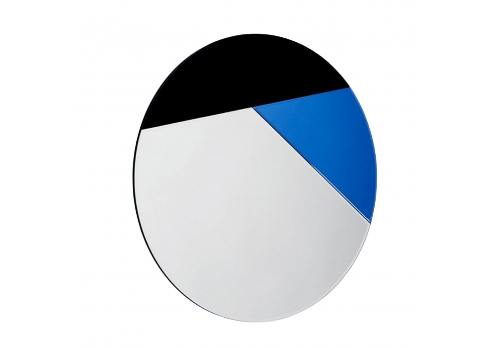 Nouveau 80 prodotto e firmato da Reflections Copenhagen è uno specchio di forma circolare in vetro applicato su base di supporto in MDF. Lo specchio è caratterizzato da forme geometriche colorate in differenti finiture che fanno riferimento all'era geo-stile anni 80.