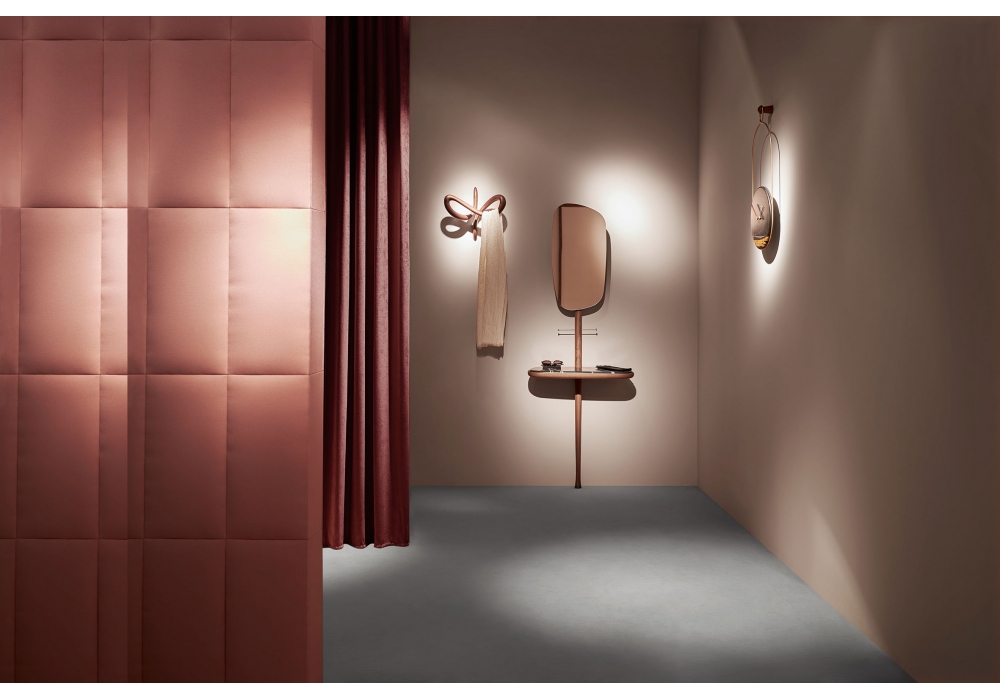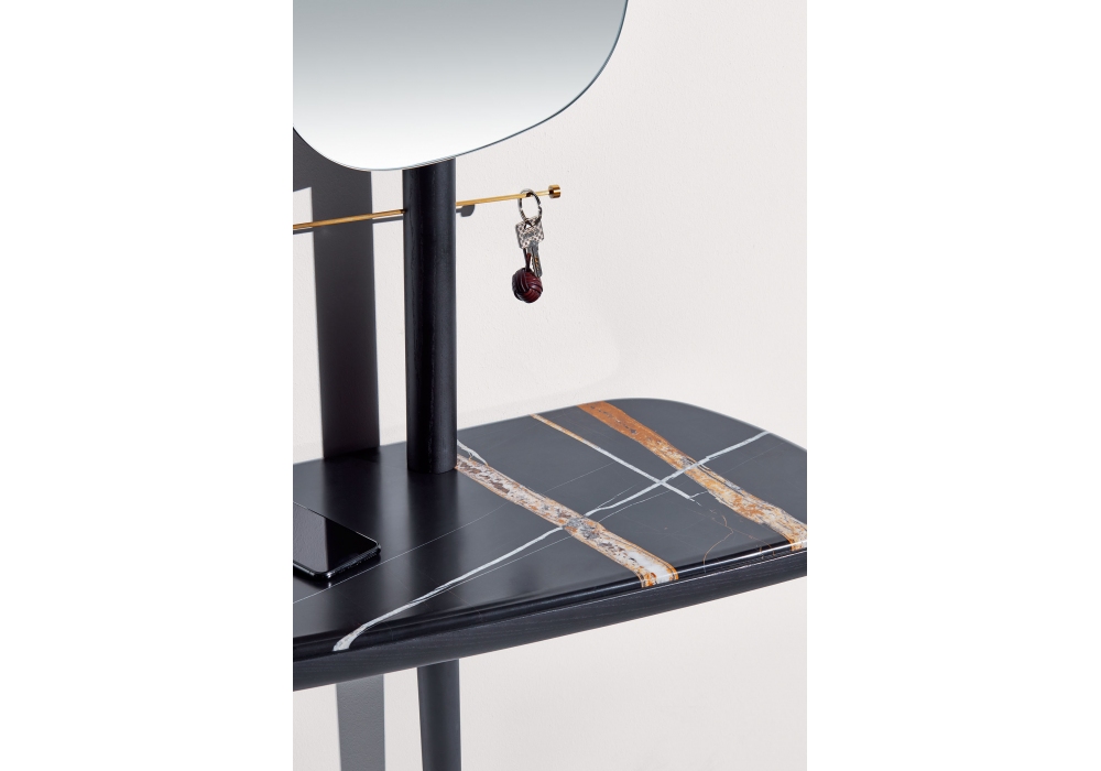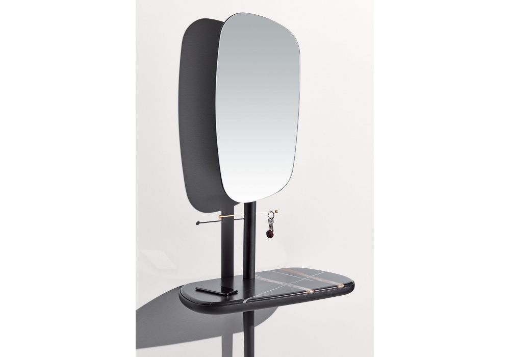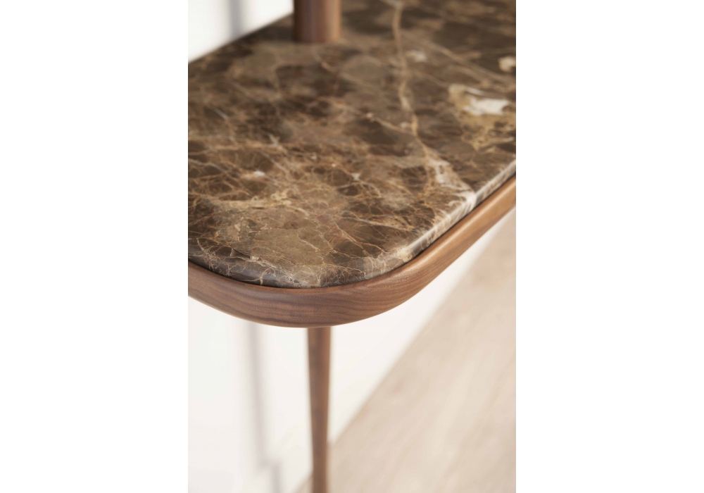 Recibidor firmato da Andrés Martinez per Nomon è un mobile da corridoio con struttura in noce naturale o con finitura Black Ash, piano in noce o marmo in diverse finiture. Lo specchio può essere regolato in due altezze e posizioni.