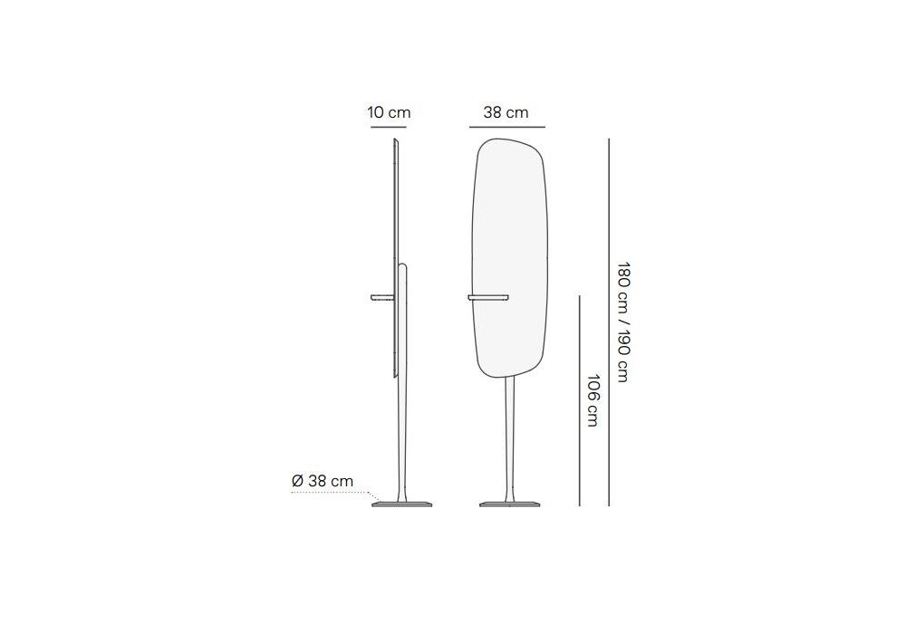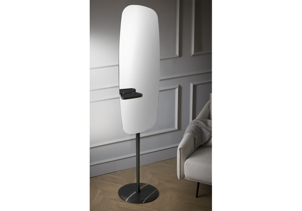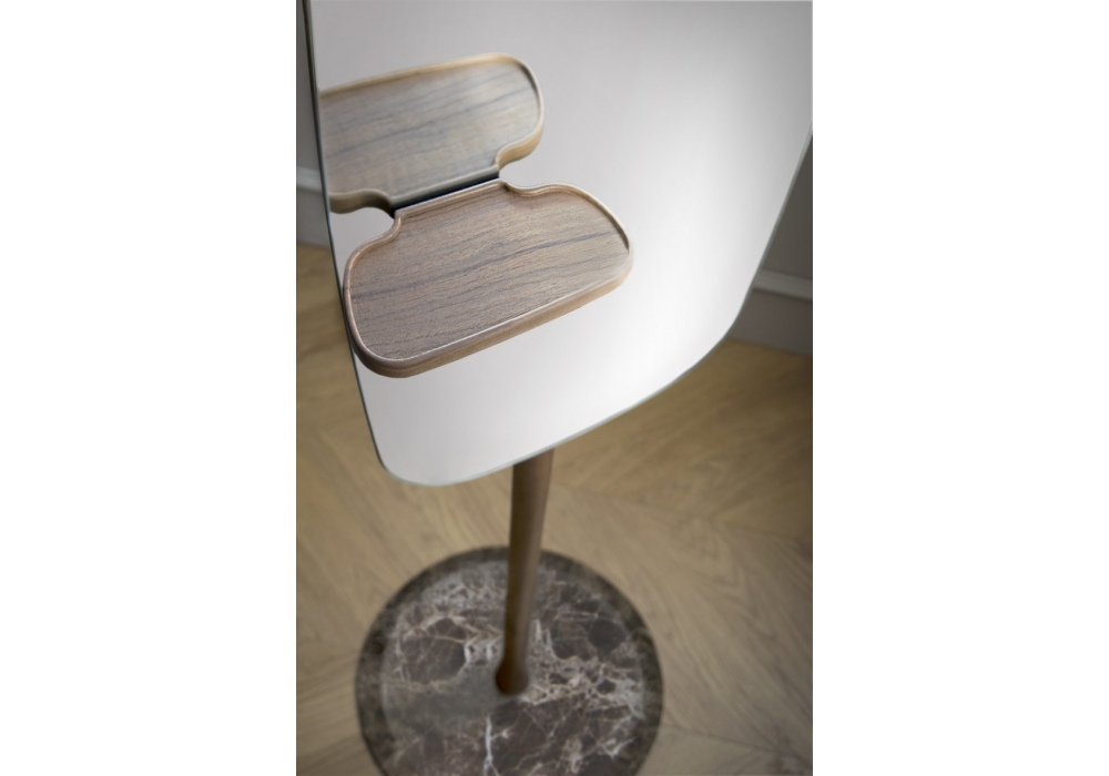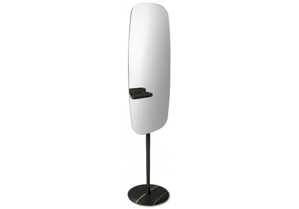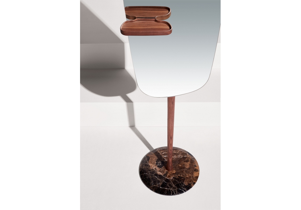 Espejo Pie firmato da Andrés Martinez per Nomon è uno specchio da terra con struttura in noce o in frassino nero, con base in marmo Emperador o Sahara Noir.