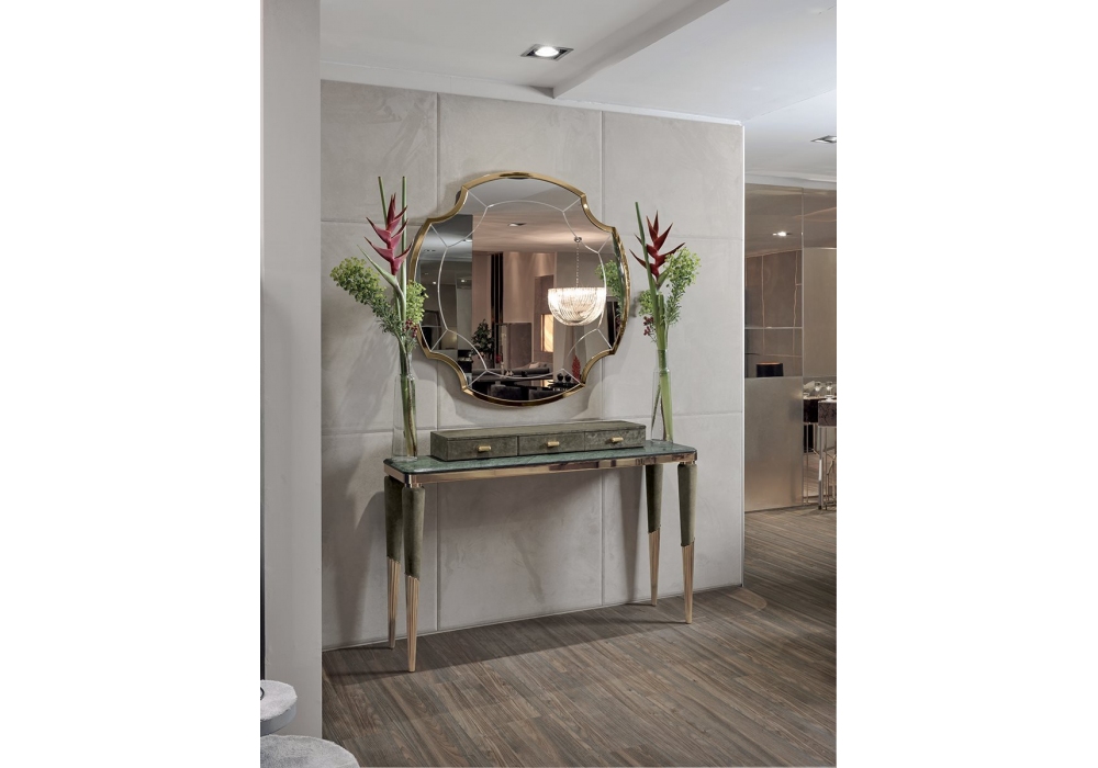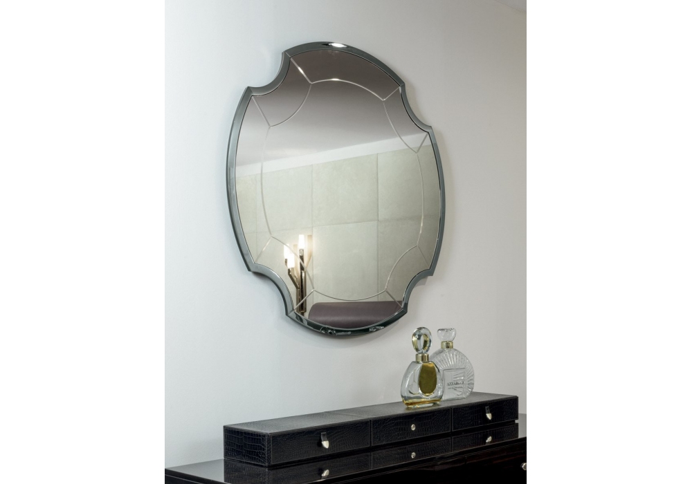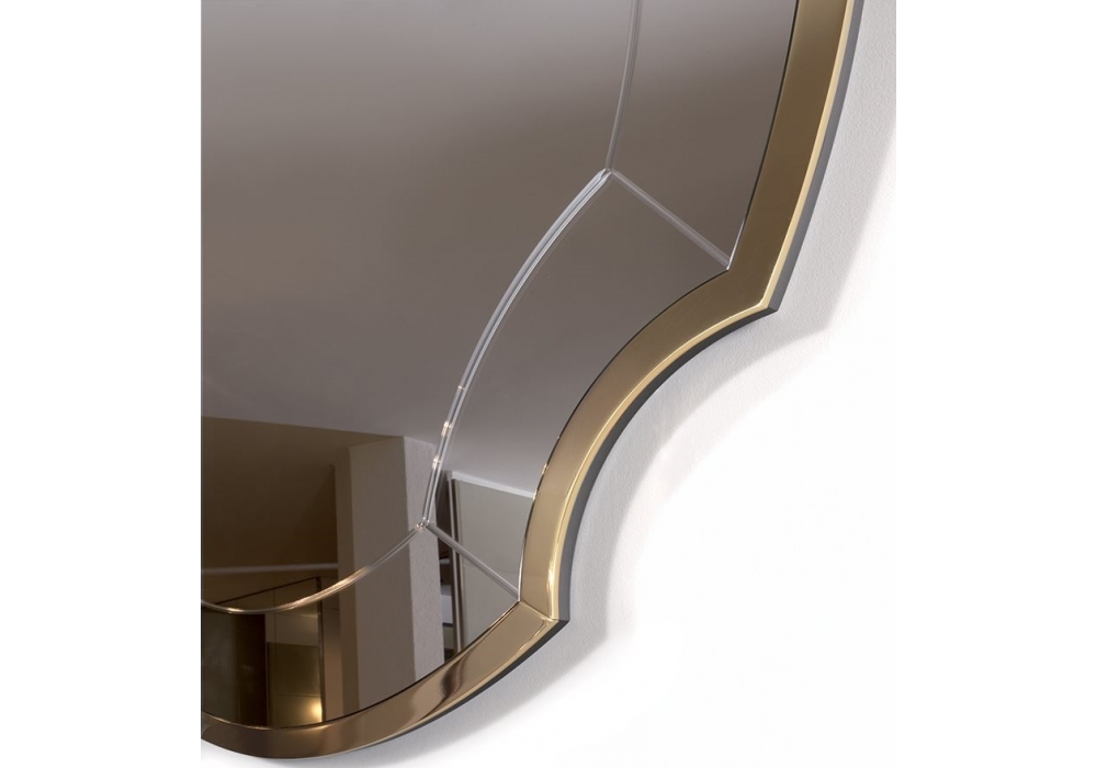 Graydon firmato da Giuseppe Iasparra per Longhi è uno specchio con finitura bronzo, fumè o naturale con decoro inciso. Bordo in metallo rettificato. Disponibile in differenti dimensioni.