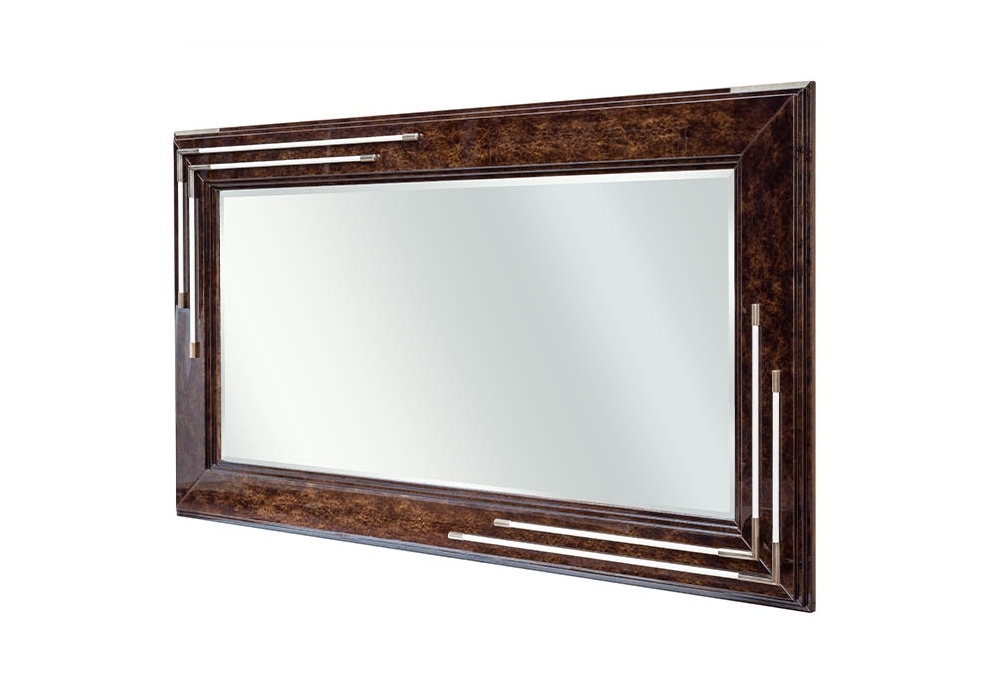 Noir firmato da Andrea Bonini per Turri è uno specchio con struttura in MDF e pannelli di particelle di legno in finitura laccata lucida con l’applicazione di cordoni in pelle e parti metalliche in finitura dorata o bronzata.