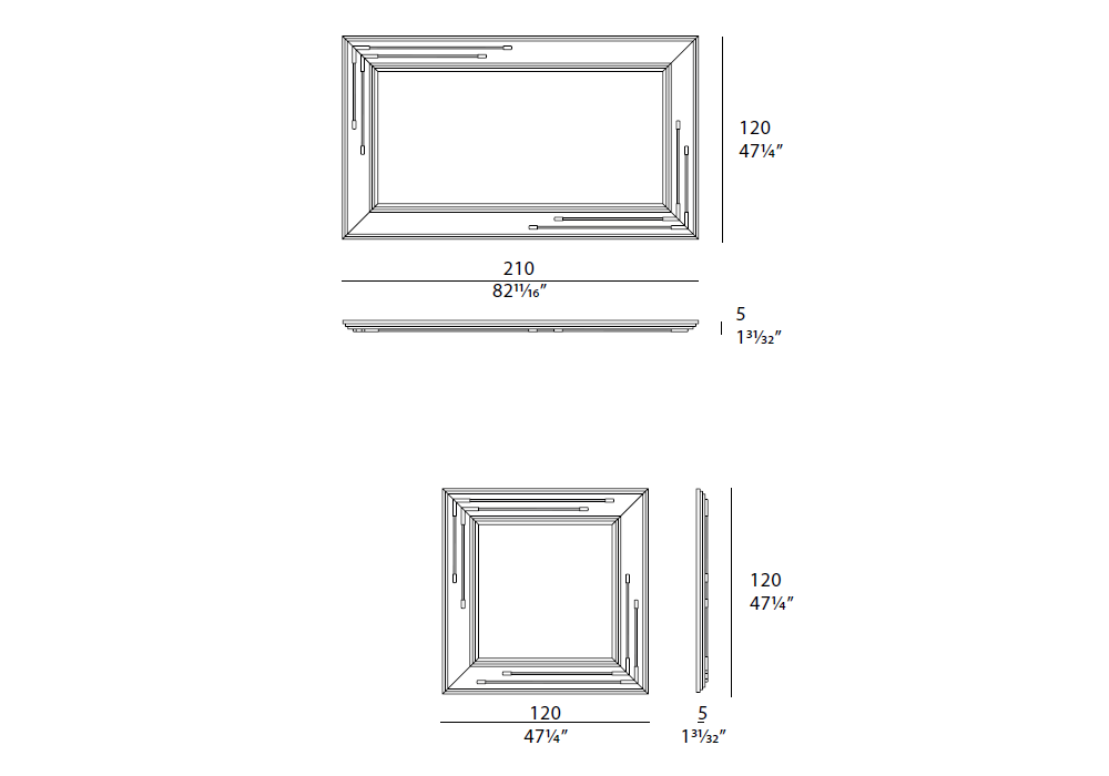 | Dimensioni | 210 x 5 x H 120 cm; 120 x 5 x H 120 cm. |