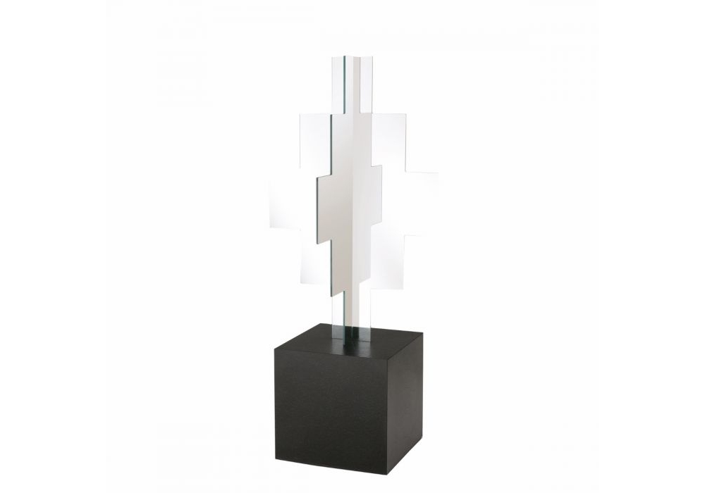 Edaird firmato da Marcelo Burlon per Driade è uno specchio da terra realizzato con due specchi sp. 5 mm. stratificati ed incollati tra loro per realizzare la forma a croce. Base in granito nero fiammato e spazzolato L. 60 P. 60 H. 60. Uso solo interno.