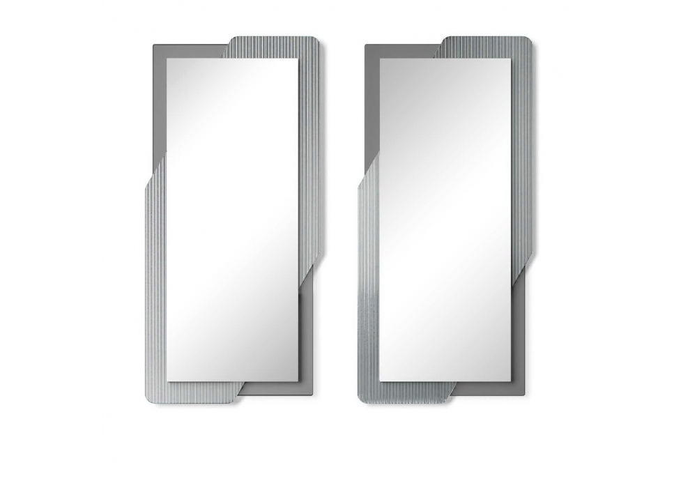 Shift firmato da Francesca Lanzavecchia per Fiam è uno specchio da parete con cornice composta da due elementi in vetro: parte in vetro trasparente o bronzo fuso a gran fuoco retroargentato; parte in vetro piano fumè o bronzo. Telaio posteriore in metallo verniciato. Possibilità di appendimento verticale od orizzontale.
