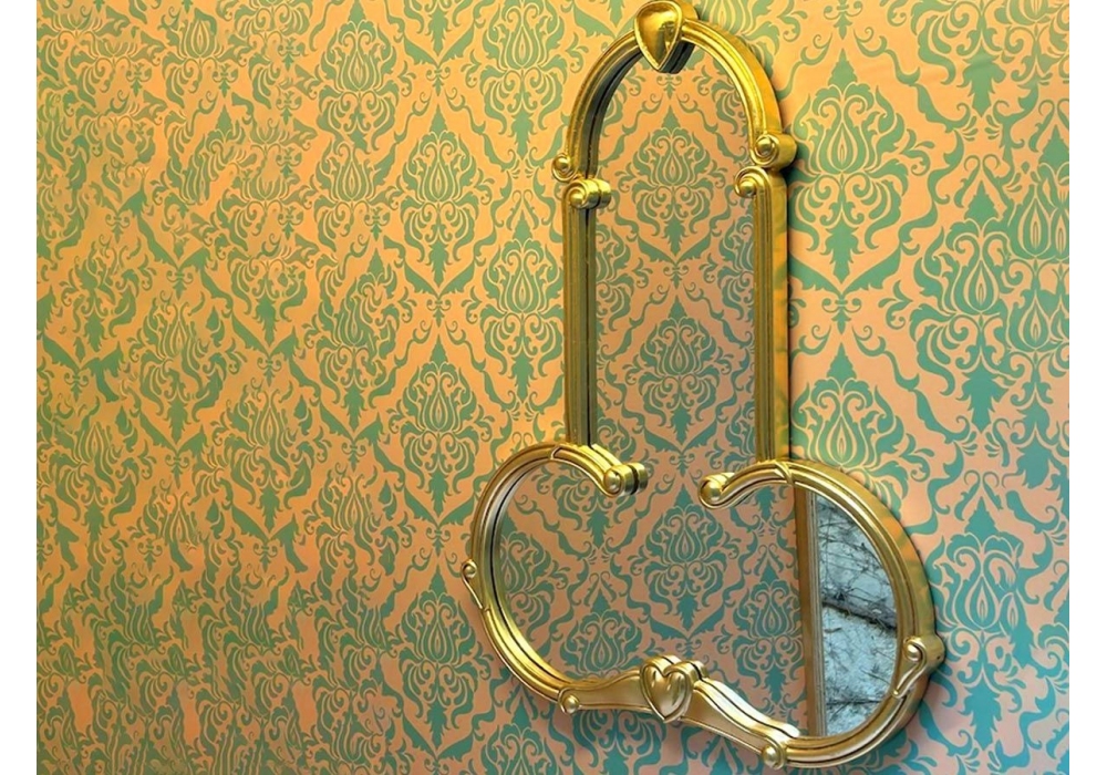 Liberty Man firmato da Francesco Decio per Seletti è uno specchio con cornice in MDF di colore d'orato e specchio in vetro.