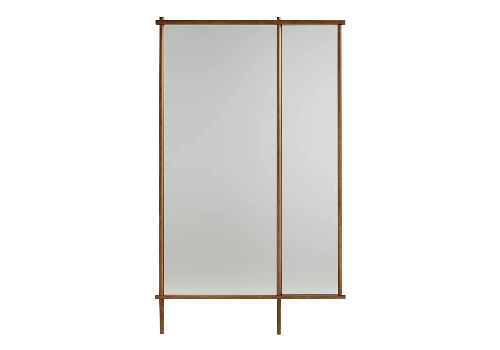Isola firmato da Mario & Giulia Mazzer per Bonaldo è uno specchio realizzato in legno massello, finitura noce Americano. Caratterizzato da uno spechio fisso e uno specchio movibile. Lo specchio appoggia a terra e prevede anche un fissaggio a parete.