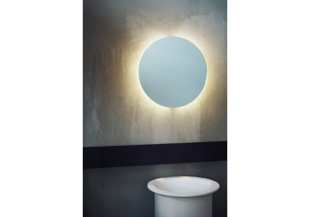 Bucatini firmato da Fabio Bortolani & Ermanno Righi for Agape è uno specchio tondo con bordo a filo lucido sorretto da un cavo in acciaio e ricoperto da materiale plastico trasparente oppure fissato a parete. Disponibile nella versione con o senza LED.