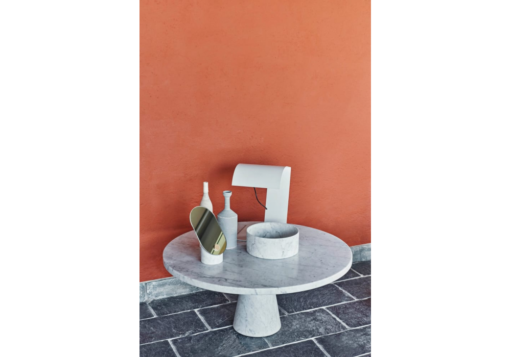 Costellation firmato da Studiopepe per Agape è uno specchio da appoggio per bagno realizzato in marmo bianco di Carrara o nero Marquina. Dettagli in ottone naturale spazzolato. Disponibile nella versione orizzontale o verticale, con o senza vassoio.